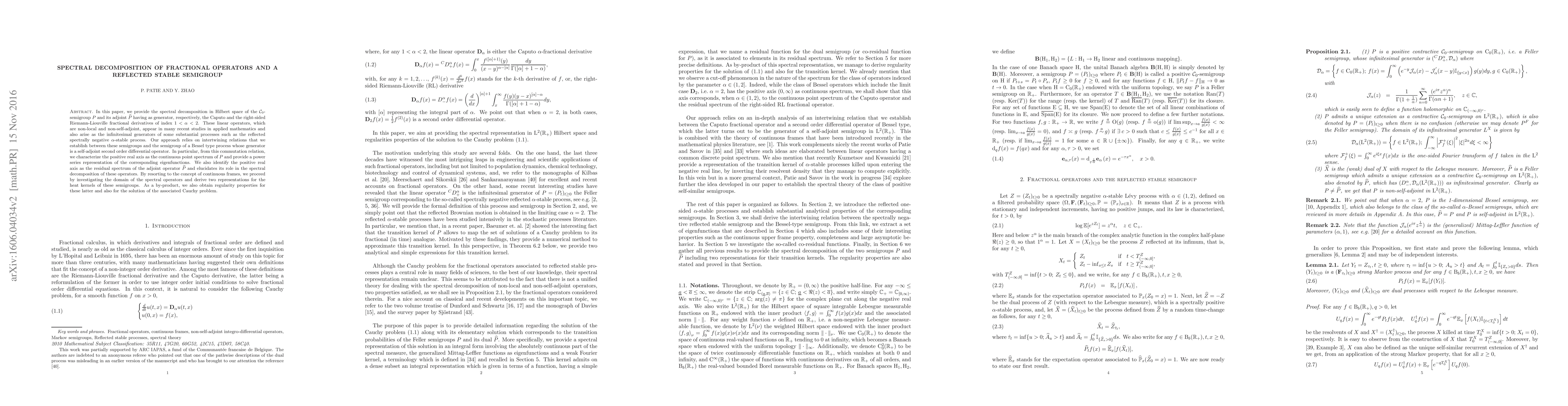 In this paper, we provide the spectral decomposition in Hilbert space of the $\mathcal{C}_0$-semigroup $P$ and its adjoint $\hatP$ having as generator, respectively, the Caputo and the right-sided Riemann-Liouville fractional derivatives of index $1<\alpha<2$. These linear operators, which are non-local and non-self-adjoint, appear in many recent studies in applied mathematics and also arise as the infinitesimal generators of some substantial processes such as the reflected spectrally negative $\alpha$-stable process. Our approach relies on intertwining relations that we establish between these semigroups and the semigroup of a Bessel type process whose generator is a self-adjoint second order differential operator. In particular, from this commutation relation, we characterize the positive real axis as the continuous point spectrum of $P$ and provide a power series representation of the corresponding eigenfunctions. We also identify the positive real axis as the residual spectrum of the adjoint operator $\hatP$ and elucidates its role in the spectral decomposition of these operators. By resorting to the concept of continuous frames, we proceed by investigating the domain of the spectral operators and derive two representations for the heat kernels of these semigroups. As a by-product, we also obtain regularity properties for these latter and also for the solution of the associated Cauchy problem.