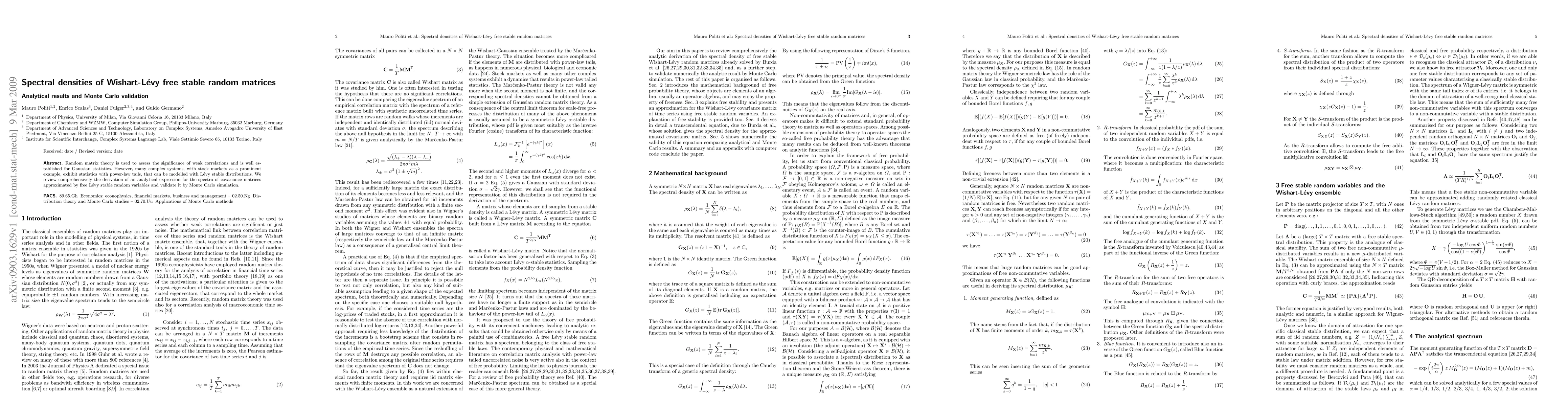 This paper derives an analytical expression for the spectral densities of Wishart-Levy free stable random matrices, which model systems with power-law tails, and validates the results using Monte Carlo simulations. The study extends random matrix theory to non-Gaussian statistics for complex systems like stock markets.
