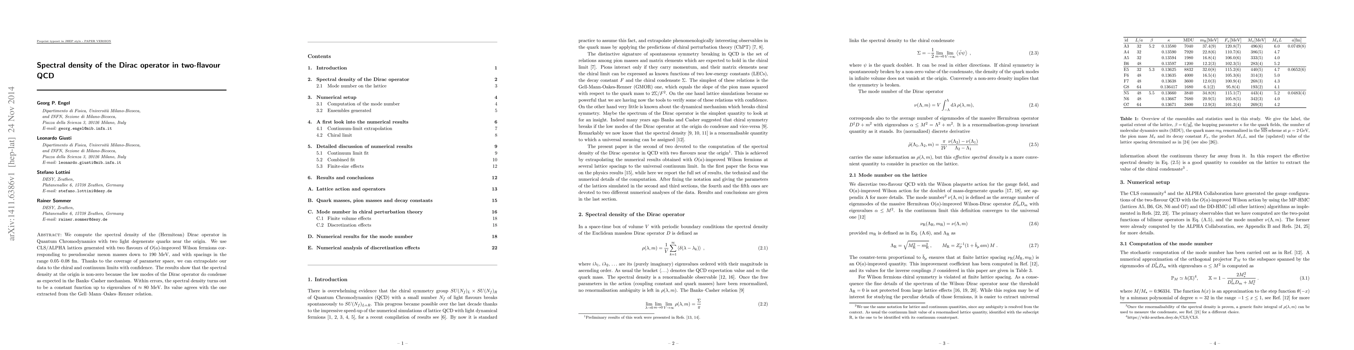 We compute the spectral density of the (Hermitean) Dirac operator in Quantum Chromodynamics with two light degenerate quarks near the origin. We use CLS/ALPHA lattices generated with two flavours of O(a)-improved Wilson fermions corresponding to pseudoscalar meson masses down to 190 MeV, and with spacings in the range 0.05-0.08 fm. Thanks to the coverage of parameter space, we can extrapolate our data to the chiral and continuum limits with confidence. The results show that the spectral density at the origin is non-zero because the low modes of the Dirac operator do condense as expected in the Banks-Casher mechanism. Within errors, the spectral density turns out to be a constant function up to eigenvalues of approximately 80 MeV. Its value agrees with the one extracted from the Gell-Mann-Oakes-Renner relation.