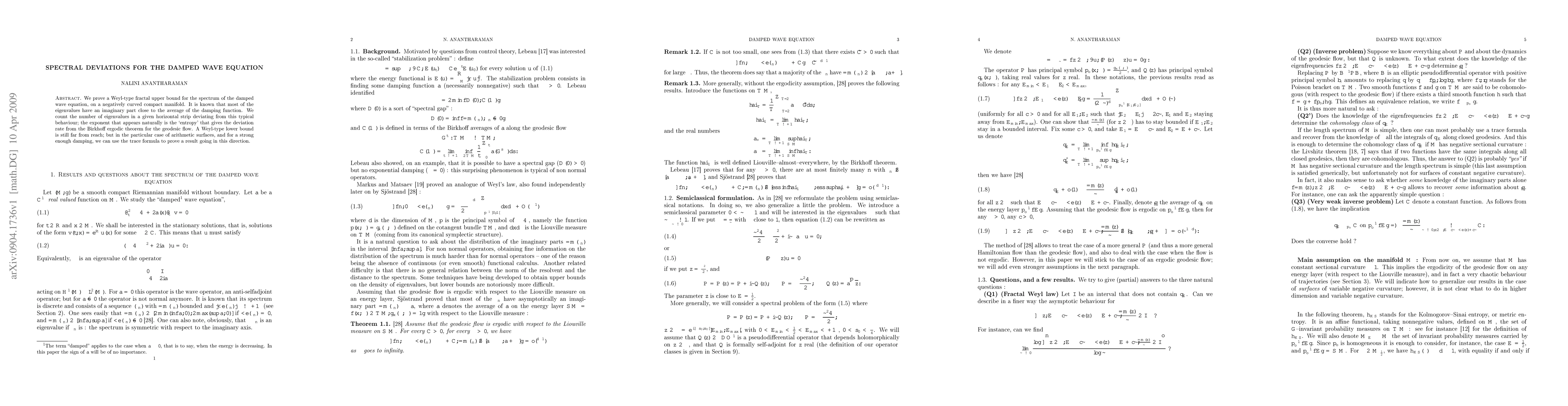 This paper proves a fractal upper bound for the spectrum of the damped wave equation on curved manifolds, showing that eigenvalues deviate from typical behavior at a rate related to entropy, and provides a new result in this direction for arithmetic surfaces with strong damping.