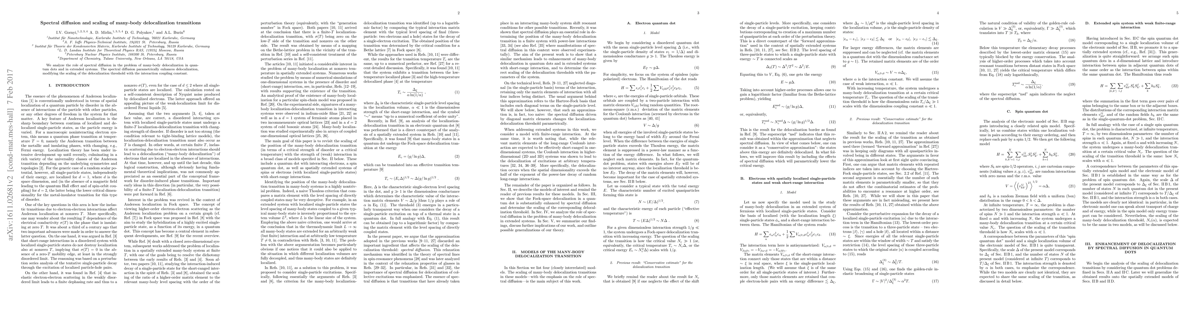 This paper investigates how spectral diffusion influences many-body delocalization in quantum dots and extended systems, demonstrating that it significantly enhances delocalization and alters the scaling of the delocalization threshold with interaction coupling constants.
