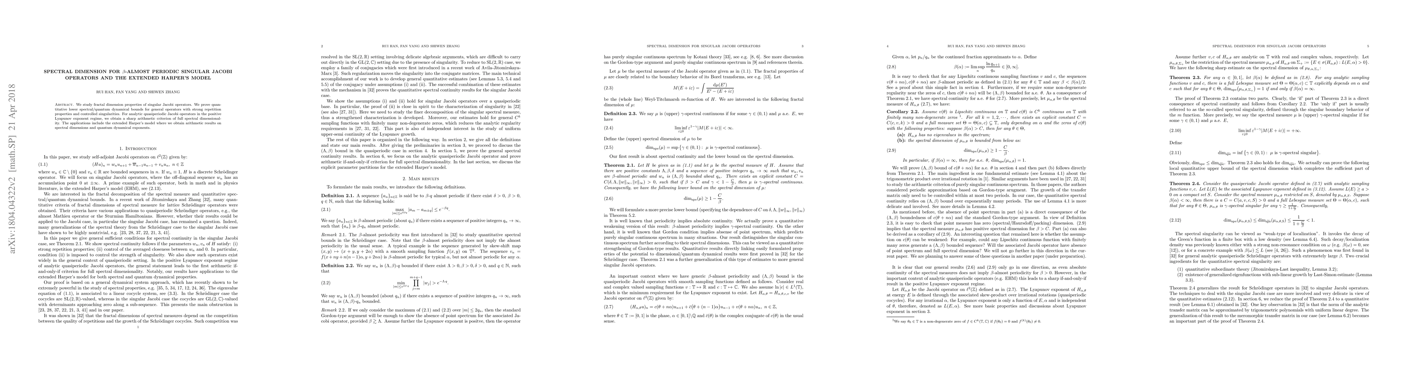 This paper explores the fractal dimension properties of singular Jacobi operators, establishing quantitative bounds for operators with strong repetition and controlled singularities. It provides a sharp arithmetic criterion for the spectral dimensionality of analytic quasiperiodic Jacobi operators, with applications to the extended Harper's model yielding new insights into spectral dimensions and quantum dynamical exponents.