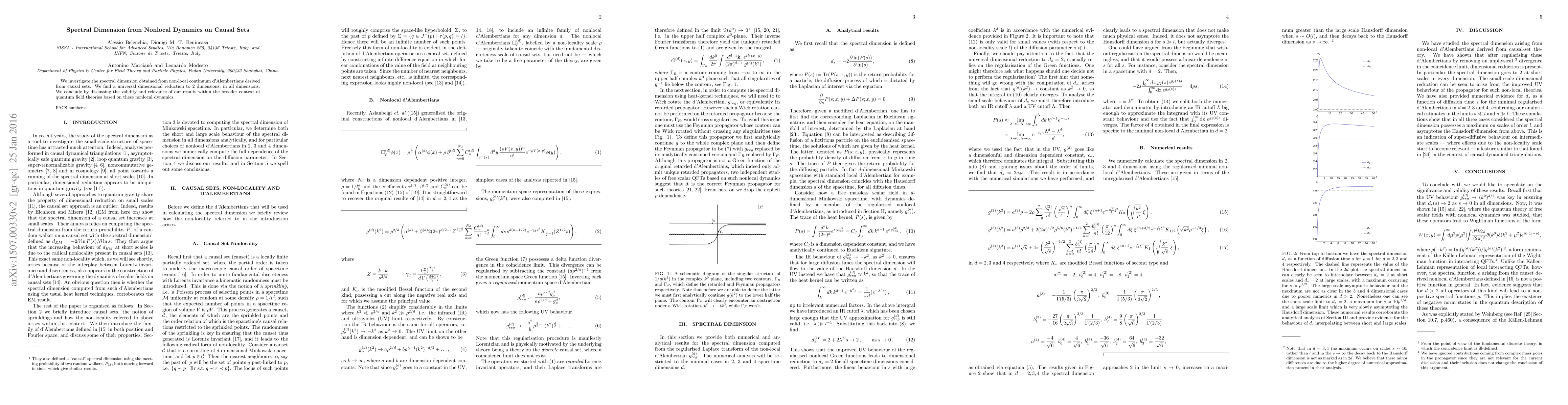 This paper explores the spectral dimension derived from nonlocal continuum d'Alembertians on causal sets, revealing a universal dimensional reduction to 2 dimensions regardless of the initial dimension. The study discusses the implications for quantum field theories based on these nonlocal dynamics.