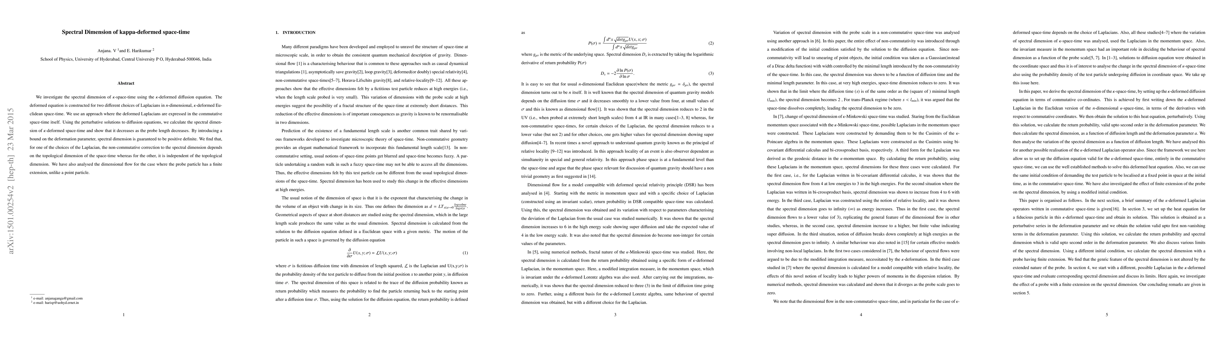This research calculates the spectral dimension of $\kappa$-deformed space-time using $\kappa$-deformed diffusion equations and finds it decreases with decreasing probe length. The study shows a positive spectral dimension when bounded by the deformation parameter, and reveals differing non-commutative corrections dependent on the topological dimension.