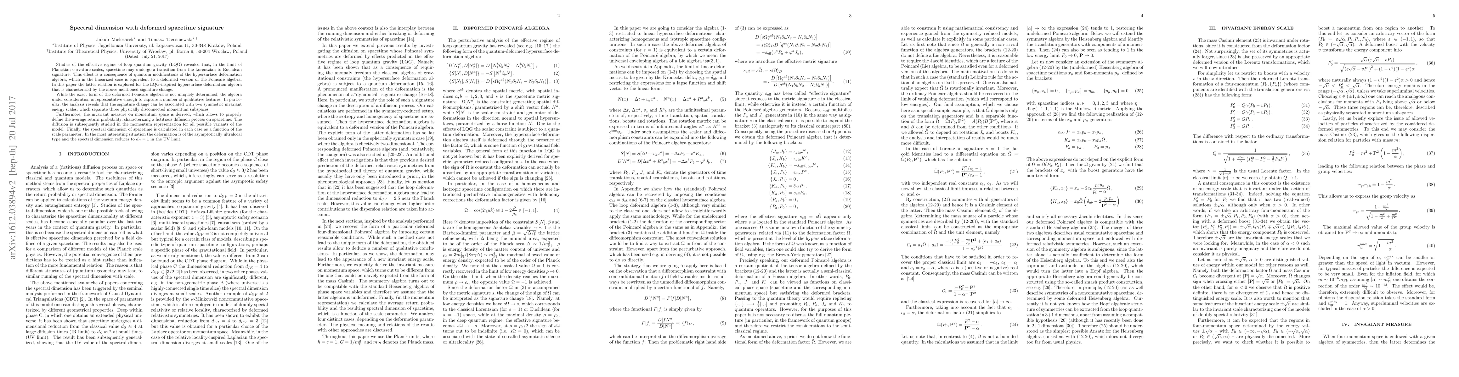 Studies of the effective regime of loop quantum gravity (LQG) revealed that, in the limit of Planckian curvature scales, spacetime may undergo a transition from the Lorentzian to Euclidean signature. This effect is a consequence of quantum modifications of the hypersurface deformation algebra, which in the linearized case is equivalent to a deformed version of the Poincar\'e algebra. In this paper the latter relation is applied to the LQG-inspired hypersurface deformation algebra that is characterized by the above mentioned signature change. While the exact form of the deformed Poincar\'e algebra is not uniquely determined, the algebra under consideration is representative enough to capture a number of qualitative features. In particular, the analysis reveals that the signature change can be associated with two symmetric invariant energy scales, which separate three physically disconnected momentum subspaces. Furthermore, the invariant measure on momentum space is derived, which allows to properly define the average return probability, characterizing a fictitious diffusion process on spacetime. The diffusion is subsequently studied in the momentum representation for all possible variants of the model. Finally, the spectral dimension of spacetime is calculated in each case as a function of the scale parameter. In the most interesting case the deformation is of the asymptotically ultralocal type and the spectral dimension undergoes a reduction to $d_S = 1$ in the UV limit.