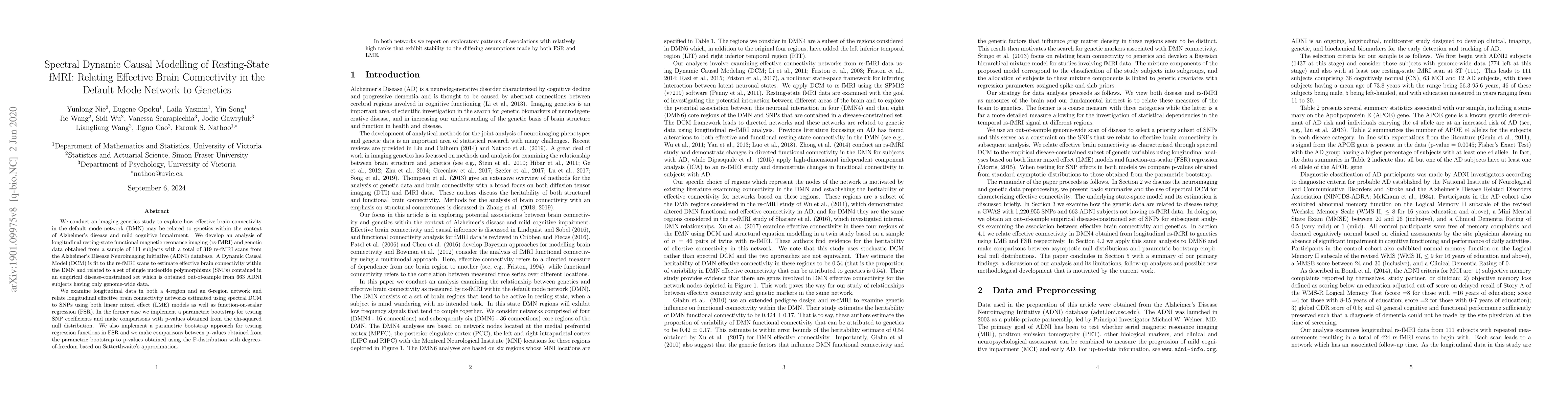 This study uses spectral Dynamic Causal Modelling of resting-state fMRI to investigate the relationship between effective brain connectivity in the default mode network and genetic factors in Alzheimer's disease and mild cognitive impairment. Findings reveal stable associations between longitudinal effective connectivity networks and specific SNPs, suggesting a genetic influence on DMN connectivity.