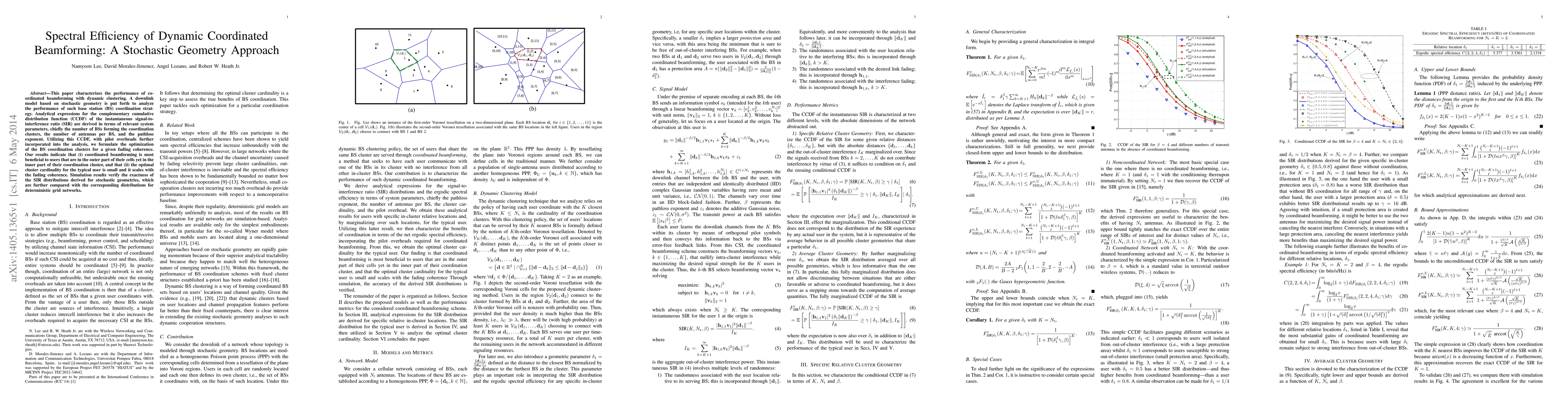 This paper characterizes the performance of coordinated beamforming with dynamic clustering. A downlink model based on stochastic geometry is put forth to analyze the performance of such base station (BS) coordination strategy. Analytical expressions for the complementary cumulative distribution function (CCDF) of the instantaneous signal-to-interference ratio (SIR) are derived in terms of relevant system parameters, chiefly the number of BSs forming the coordination clusters, the number of antennas per BS, and the pathloss exponent. Utilizing this CCDF, with pilot overheads further incorporated into the analysis, we formulate the optimization of the BS coordination clusters for a given fading coherence. Our results indicate that (i) coordinated beamforming is most beneficial to users that are in the outer part of their cells yet in the inner part of their coordination cluster, and that (ii) the optimal cluster cardinality for the typical user is small and it scales with the fading coherence. Simulation results verify the exactness of the SIR distributions derived for stochastic geometries, which are further compared with the corresponding distributions for deterministic grid networks.