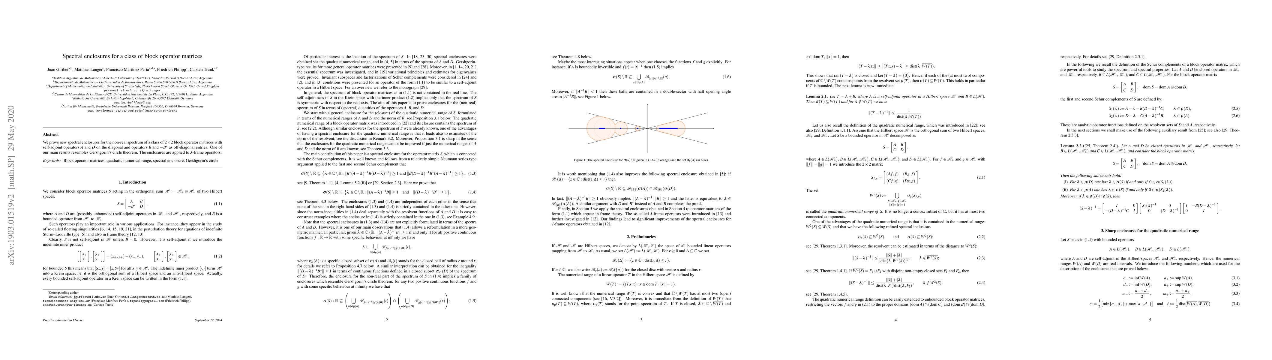 This paper establishes new spectral enclosures for the non-real spectrum of $2\times2$ block operator matrices, with self-adjoint operators on the diagonal and conjugate transpose operators off-diagonal. The results include a theorem analogous to Gershgorin's circle theorem and are applied to $J$-frame operators.