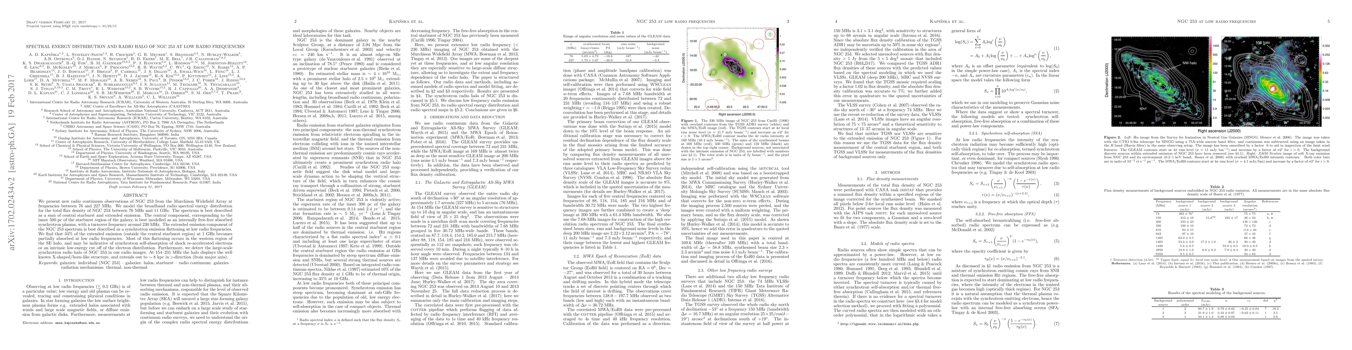 New radio observations of NGC 253 reveal a complex spectral energy distribution with two main components: a central starburst region and an extended emission component that may indicate synchrotron self-absorption or an intrinsic low-energy electron distribution cut-off. The galaxy also hosts a large-scale synchrotron radio halo with an X-shaped structure extending out to ~8kpc.