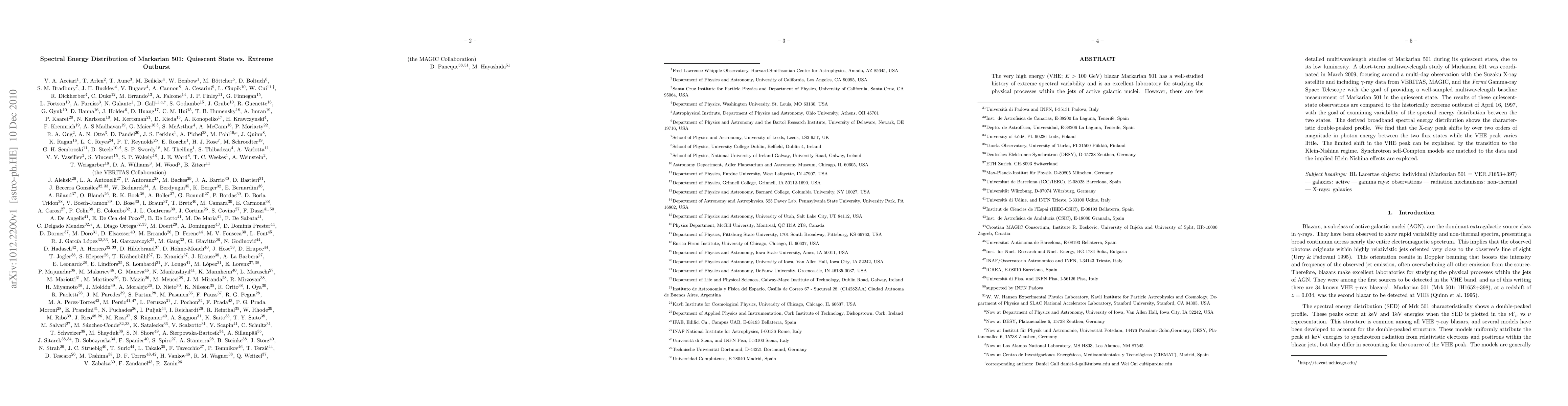 A study of Markarian 501's spectral energy distribution shows that the X-ray peak shifts significantly between its quiescent state and an extreme outburst, while the VHE peak remains relatively stable.