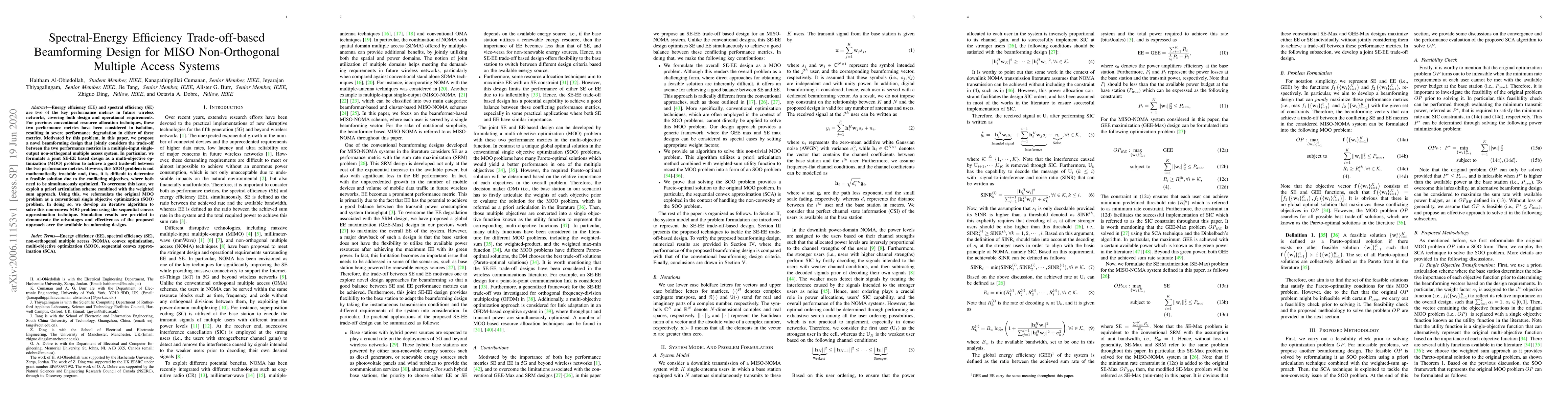 This paper proposes a novel beamforming design for MISO non-orthogonal multiple access systems that jointly optimizes spectral efficiency and energy efficiency. It employs a multi-objective optimization approach, reformulated into a single-objective problem using a weighted sum method, and solved via iterative sequential convex approximation.