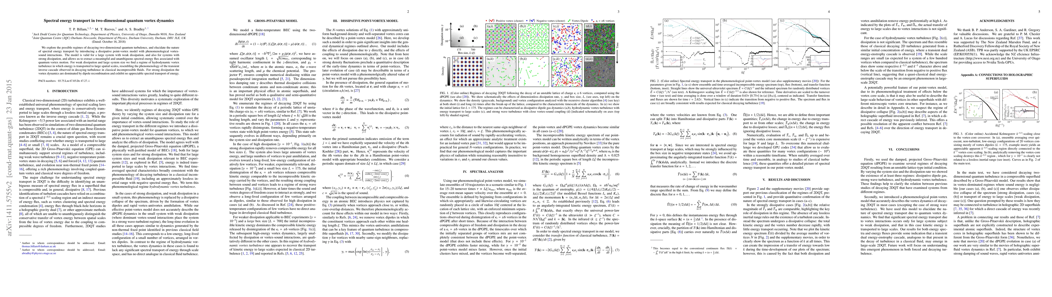 This paper investigates the spectral energy transport in decaying two-dimensional quantum turbulence using a dissipative point-vortex model. It reveals a hydrodynamic vortex turbulence regime with energy cascading to large scales under weak dissipation, akin to classical turbulence, while strong dissipation leads to dipole recombination without significant spectral energy transport.