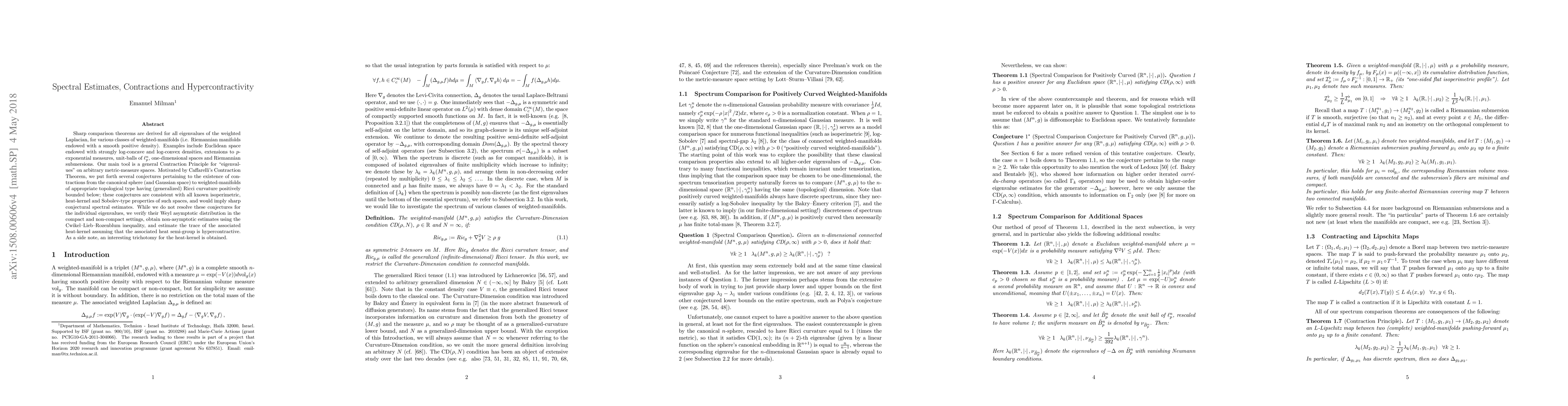Sharp comparison theorems are derived for all eigenvalues of the (weighted) Laplacian, for various classes of weighted-manifolds (i.e. Riemannian manifolds endowed with a smooth positive density). Examples include Euclidean space endowed with strongly log-concave and log-convex densities, extensions to $p$-exponential measures, unit-balls of $\ell_p^n$, one-dimensional spaces and Riemannian submersions. Our main tool is a general Contraction Principle for "eigenvalues" on arbitrary metric-measure spaces. Motivated by Caffarelli's Contraction Theorem, we put forth several conjectures pertaining to the existence of contractions from the canonical sphere (and Gaussian space) to weighted-manifolds of appropriate topological type having (generalized) Ricci curvature positively bounded below; these conjectures are consistent with all known isoperimetric, heat-kernel and Sobolev-type properties, and would imply sharp conjectural spectral estimates on such spaces. While we do not resolve these conjectures for the individual eigenvalues, we verify their Weyl asymptotic distribution in the compact and non-compact settings, obtain non-asymptotic estimates using the Cwikel--Lieb--Rozenblum inequality, and estimate the trace of the associated heat-kernel assuming that the associated heat semi-group is hypercontractive. As a side note, an interesting trichotomy for the heat-kernel is obtained.