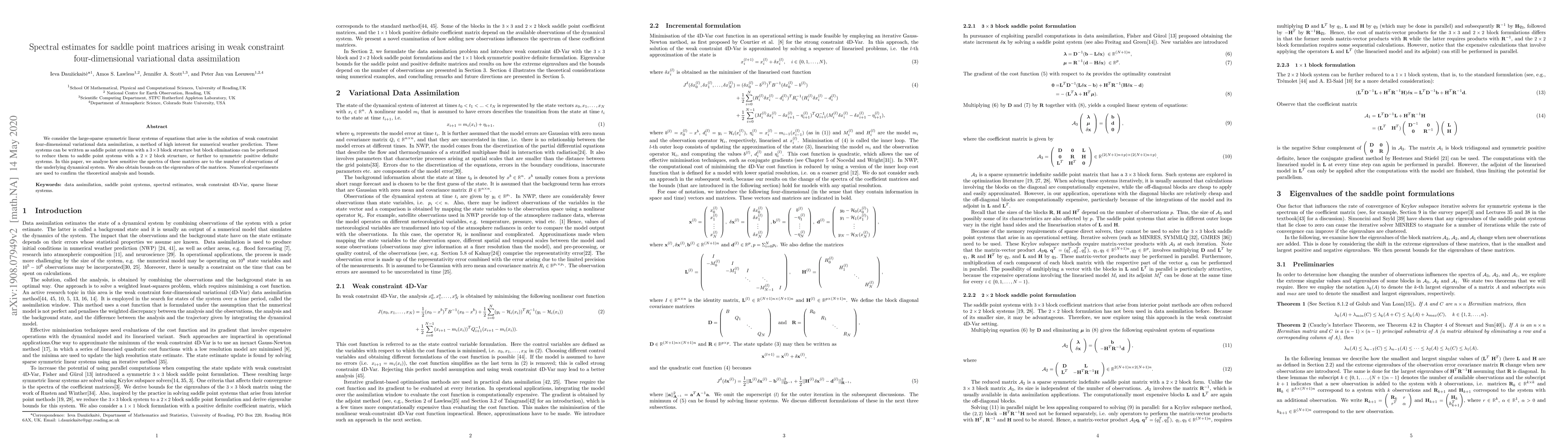 This paper investigates the spectral properties of saddle point matrices in weak constraint four-dimensional variational data assimilation, focusing on their sensitivity to the number of observations. It provides bounds on the eigenvalues and confirms theoretical findings with numerical experiments.