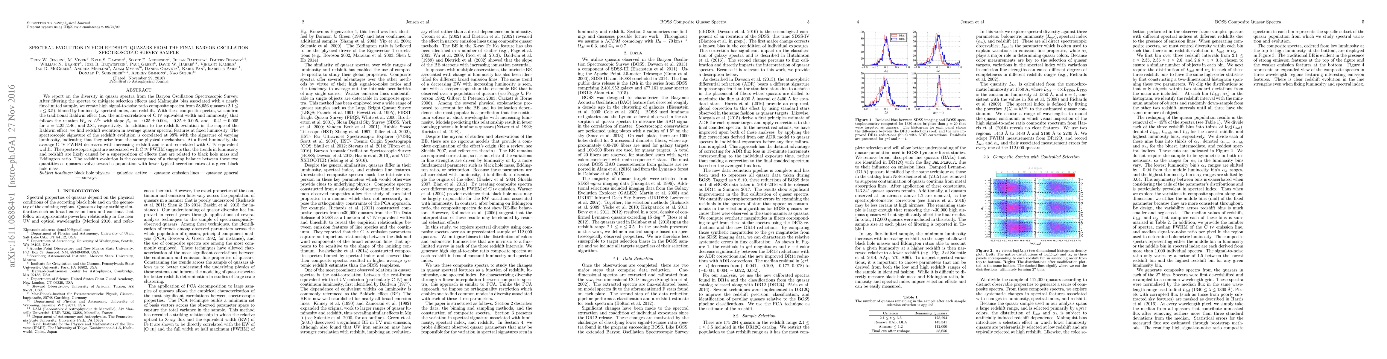 We report on the diversity in quasar spectra from the Baryon Oscillation Spectroscopic Survey. After filtering the spectra to mitigate selection effects and Malmquist bias associated with a nearly flux-limited sample, we create high signal-to-noise ratio composite spectra from 58,656 quasars (2.1 \le z \le 3.5), binned by luminosity, spectral index, and redshift. With these composite spectra, we confirm the traditional Baldwin effect (BE, i.e., the anticorrelation of C IV equivalent width (EW) and luminosity) that follows the relation W_\lambda \propto L^{\beta_w} with slope \beta_w = -0.35 \pm 0.004, -0.35 \pm 0.005, and -0.41 \pm 0.005 for z = 2.25, 2.46, and 2.84, respectively. In addition to the redshift evolution in the slope of the BE, we find redshift evolution in average quasar spectral features at fixed luminosity. The spectroscopic signature of the redshift evolution is correlated at 98% with the signature of varying luminosity, indicating that they arise from the same physical mechanism. At a fixed luminosity, the average C IV FWHM decreases with increasing redshift and is anti-correlated with C IV EW. The spectroscopic signature associated with C IV FWHM suggests that the trends in luminosity and redshift are likely caused by a superposition of effects that are related to black hole mass and Eddington ratio. The redshift evolution is the consequence of a changing balance between these two quantities as quasars evolve toward a population with lower typical accretion rates at a given black hole mass.