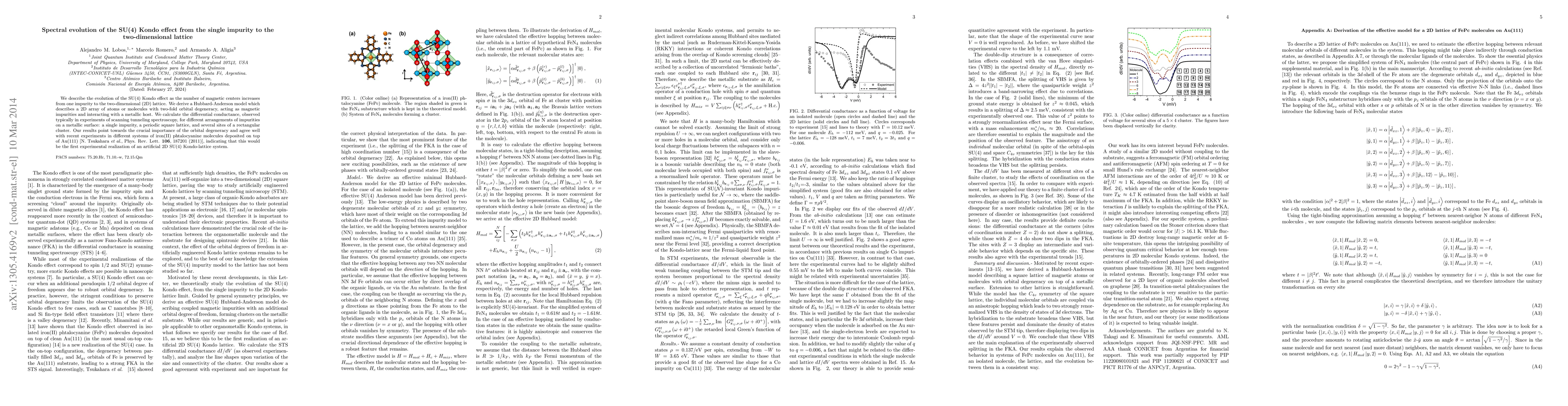 We describe the evolution of the SU(4) Kondo effect as the number of magnetic centers increases from one impurity to the two-dimensional (2D) lattice. We derive a Hubbard-Anderson model which describes a 2D array of atoms or molecules with two-fold orbital degeneracy, acting as magnetic impurities and interacting with a metallic host. We calculate the differential conductance, observed typically in experiments of scanning tunneling spectroscopy, for different arrangements of impurities on a metallic surface: a single impurity, a periodic square lattice, and several sites of a rectangular cluster. Our results point towards the crucial importance of the orbital degeneracy and agree well with recent experiments in different systems of iron(II) phtalocyanine molecules deposited on top of Au(111) [N. Tsukahara et al., Phys. Rev. Lett. 106, 187201 (2011)], indicating that this would be the first experimental realization of an artificial 2D SU(4) Kondo-lattice system.