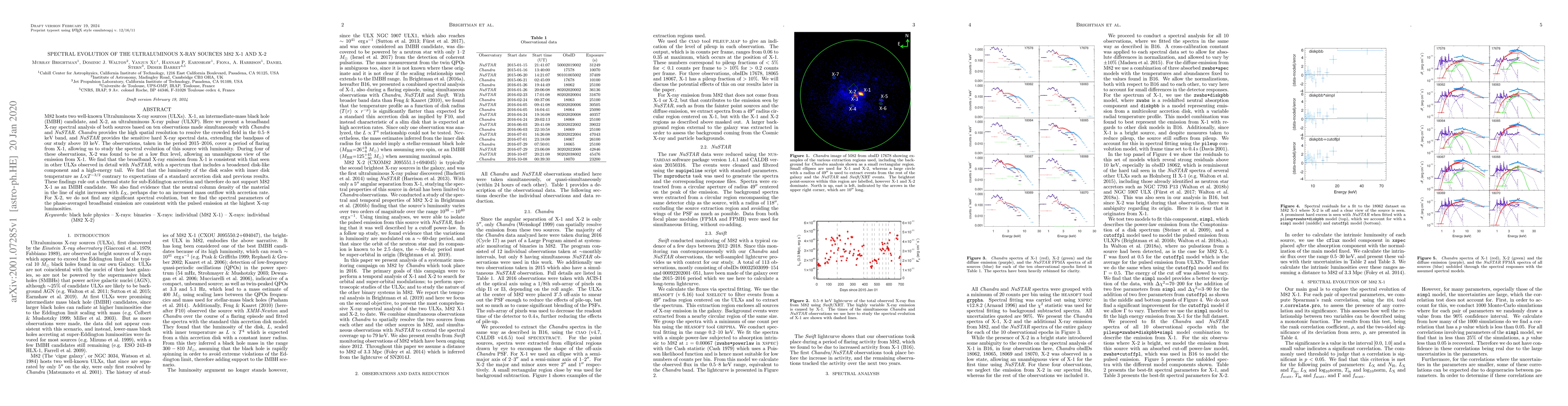 This study analyzes the spectral evolution of ultraluminous X-ray sources M82 X-1 and X-2 using simultaneous Chandra and NuSTAR observations. The findings suggest that X-1's broadband spectrum does not support it as an intermediate-mass black hole candidate, while X-2 shows no significant spectral evolution.