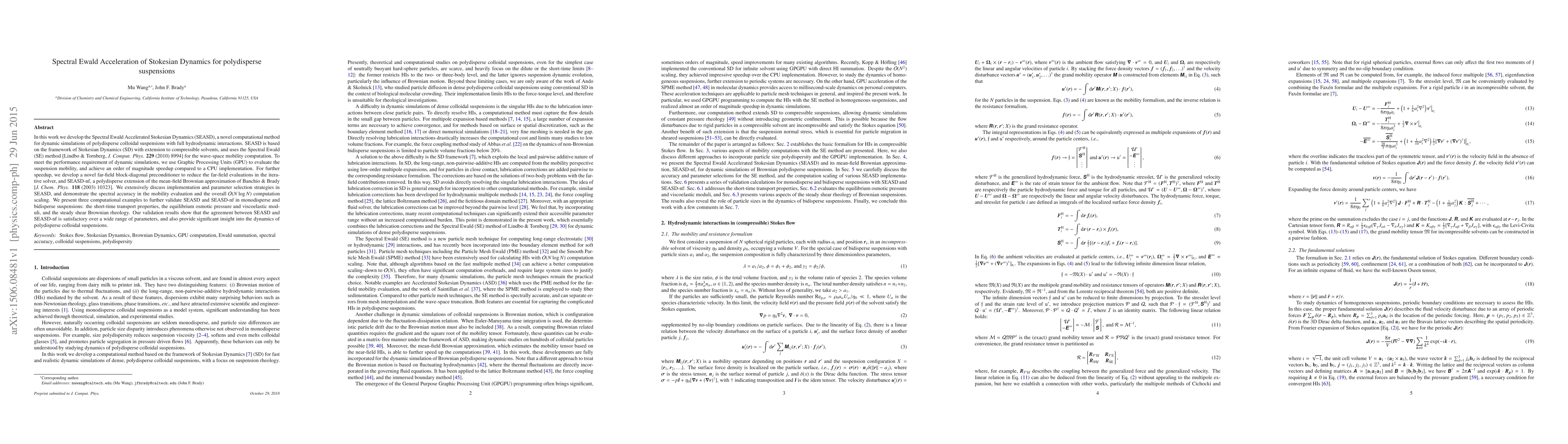 This paper introduces Spectral Ewald Accelerated Stokesian Dynamics (SEASD), a GPU-accelerated computational method for simulating polydisperse colloidal suspensions with hydrodynamic interactions. It achieves significant speedups and demonstrates $\mathcal{O}(N\log N)$ scaling, validated through various dynamic properties and rheological behaviors.