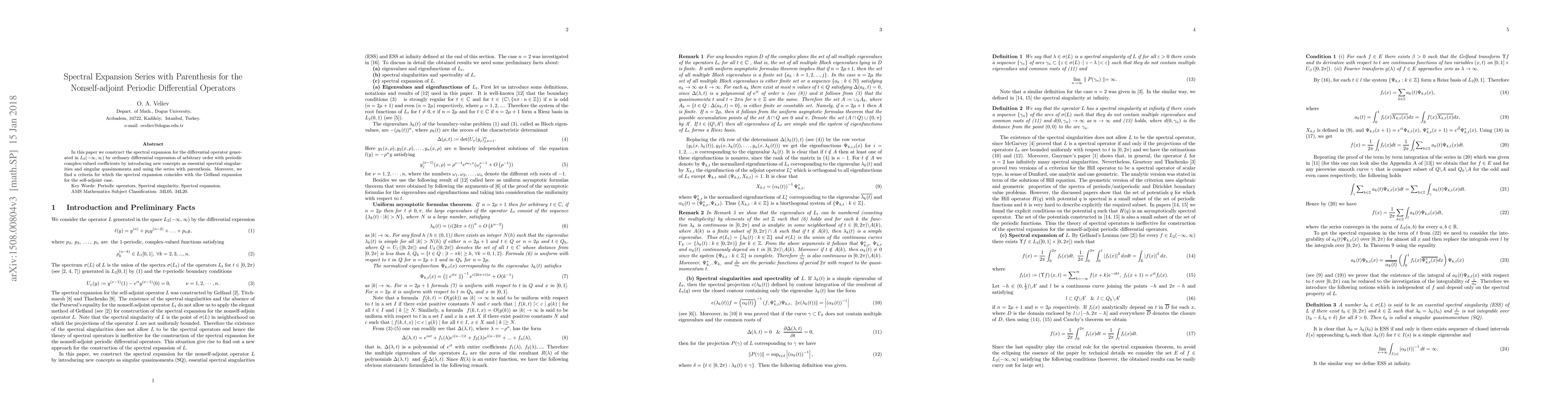 This paper constructs a spectral expansion series for nonself-adjoint periodic differential operators using new concepts of essential spectral singularities and singular quasimomenta, and a series with parenthesis. It also establishes criteria for when this expansion matches the Gelfand expansion for self-adjoint cases.