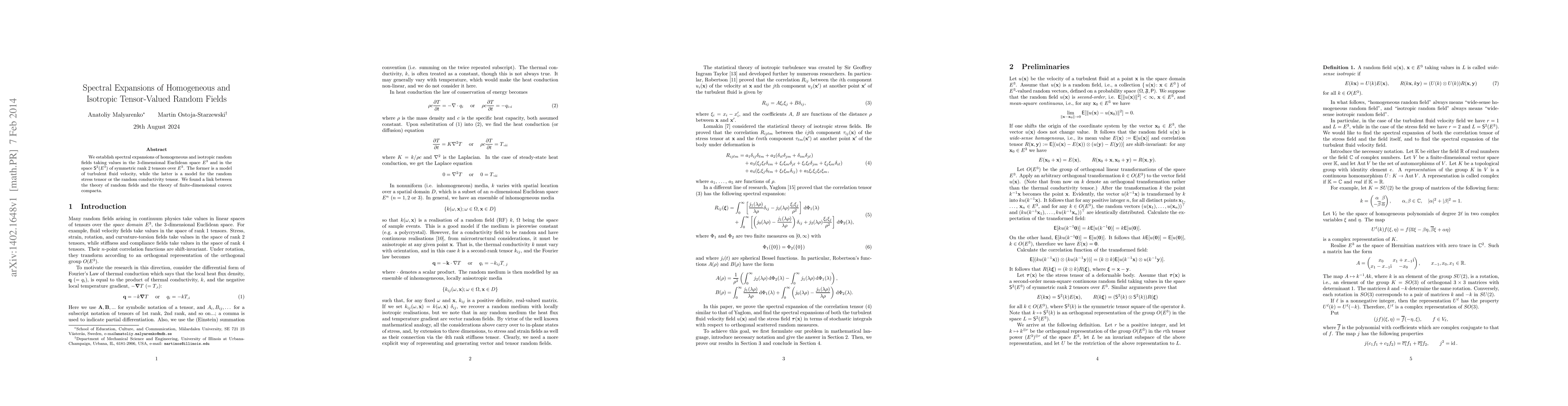 The work introduces a novel approach to spectral expansions by connecting random field theory with finite-dimensional convex compacta, providing a unique perspective on the analysis of turbulent fluid velocity and random stress tensor models.
