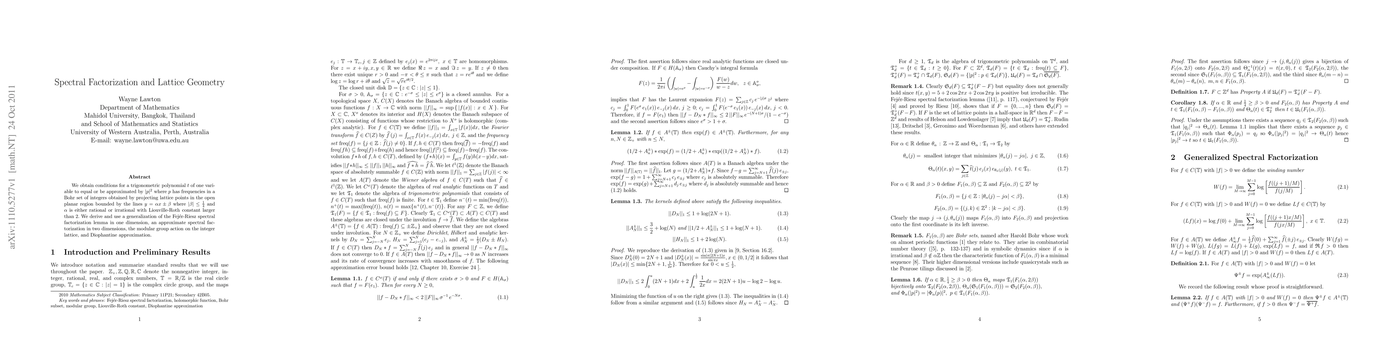 We obtain conditions for a trigonometric polynomial t of one variable to equal or be approximated by |p|^2 where p has frequencies in a Bohr set of integers obtained by projecting lattice points in the open planar region bounded by the lines y = alpha*x +- beta where |beta| leq 1/4 and alpha is either rational or irrational with Liouville-Roth constant larger than 2. We derive and use a generalization of the Fejer-Riesz spectral factorization lemma in one dimension, an approximate spectral factorization in two dimensions, the modular group action on the integer lattice, and Diophantine approximation.