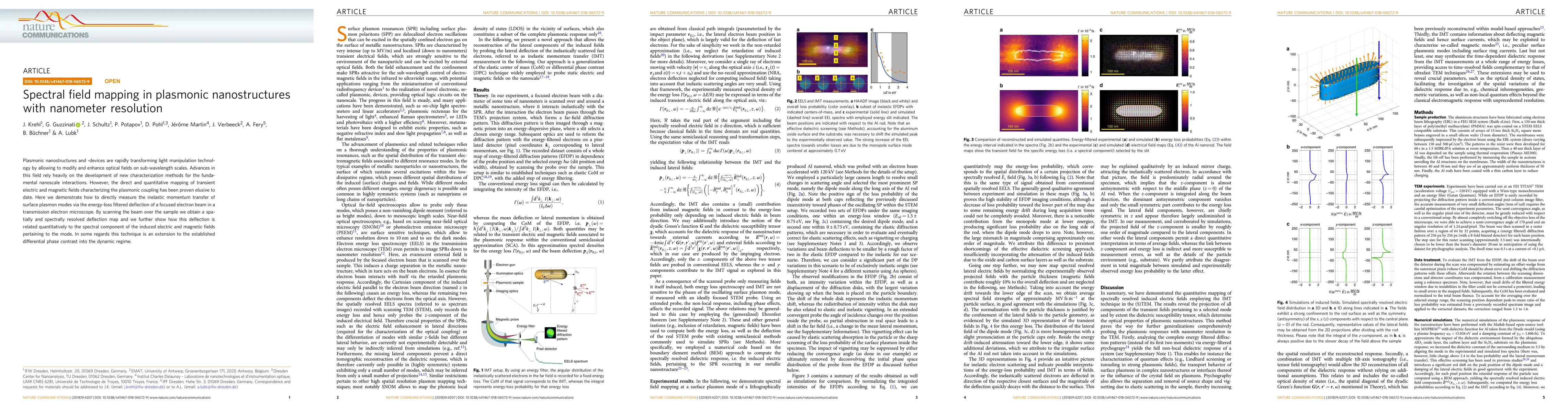 Plasmonic nanostructures and devices are rapidly transforming light manipulation technology by allowing to modify and enhance optical fields on sub-wavelength scales. Advances in this field rely heavily on the development of new characterization methods for the fundamental nanoscale interactions. However, the direct and quantitative mapping of transient electric and magnetic fields characterizing the plasmonic coupling has been proven elusive to date. Here we demonstrate how to directly measure the inelastic momentum transfer of surface plasmon modes via the energy-loss filtered deflection of a focused electron beam in a transmission electron microscope. By scanning the beam over the sample we obtain a spatially and spectrally resolved deflection map and we further show how this deflection is related quantitatively to the spectral component of the induced electric and magnetic fields pertaining to the mode. In some regards this technique is an extension to the established differential phase contrast into the dynamic regime.