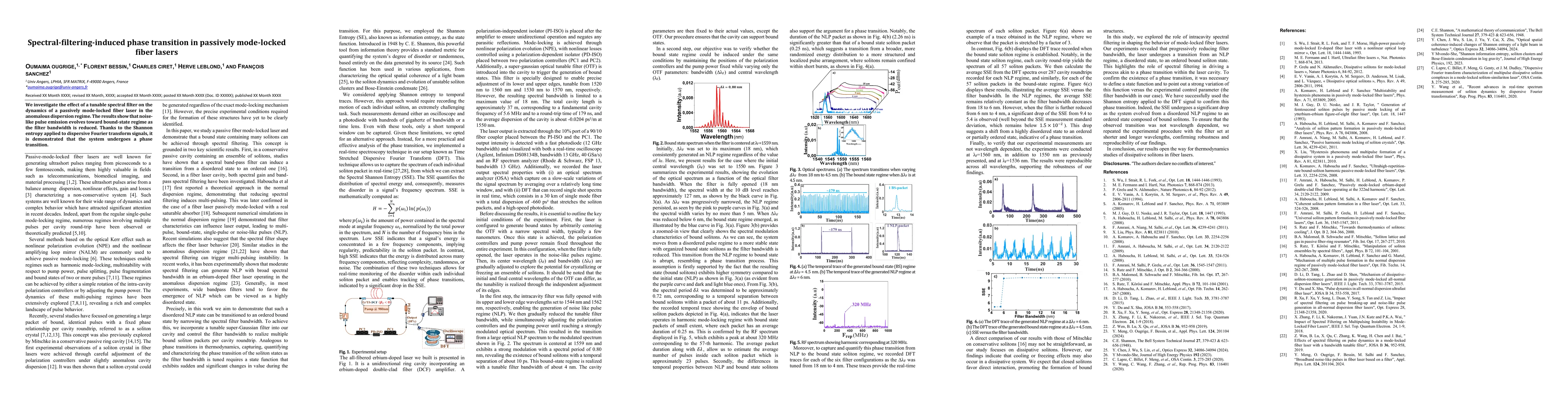 We investigate the effect of a tunable spectral filter on the dynamics of a passively mode-locked fiber laser in the anomalous dispersion regime. The results show that noise-like pulse emission evolves toward bound-state regime as the filter bandwidth is reduced. Thanks to the Shannon entropy applied to dispersive Fourier transform signals, it is demonstrated that the system undergoes a phase transition.