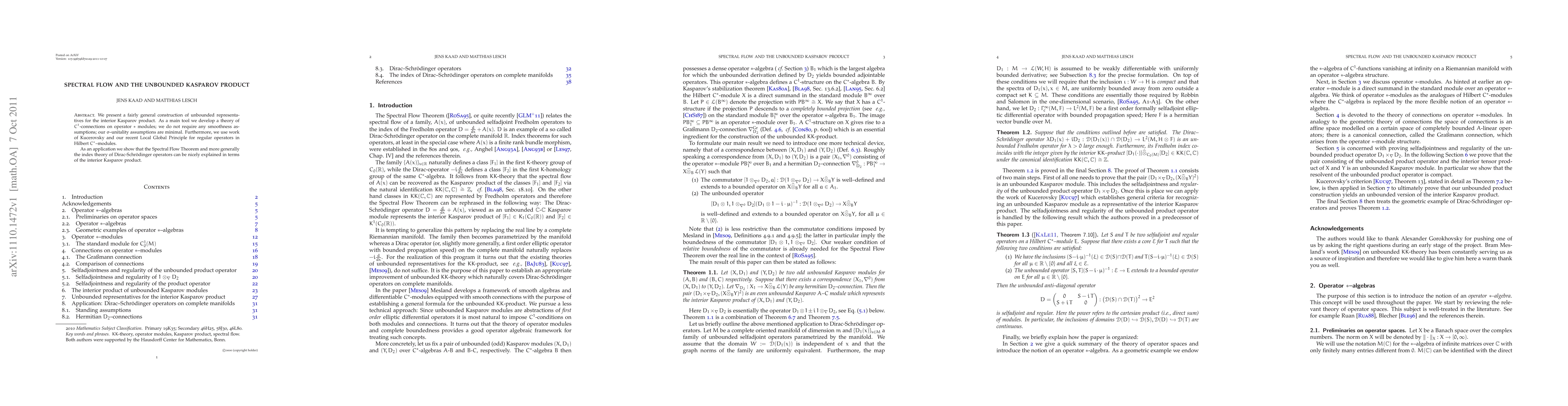This paper constructs unbounded representatives for the interior Kasparov product using C^1-connections on operator * modules and applies this to explain the Spectral Flow Theorem and index theory for Dirac-Schr\"odinger operators. The approach does not require smoothness assumptions and uses minimal sigma-unitality conditions.