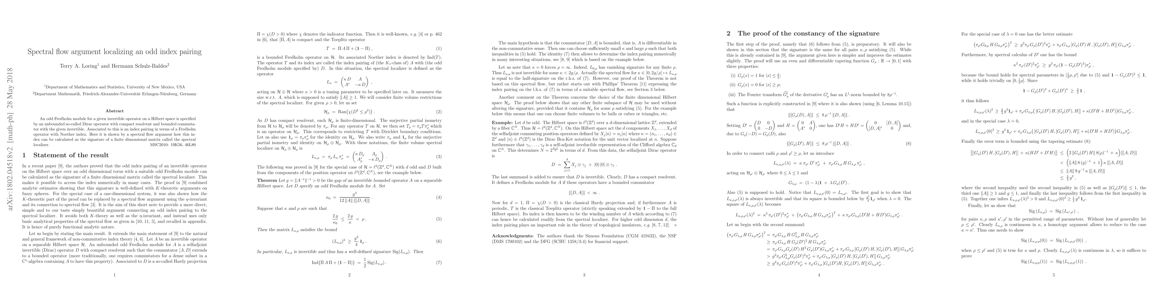 This paper demonstrates how an odd index pairing for a Fredholm module can be localized using a spectral flow argument, showing that the index can be calculated as the signature of a finite-dimensional matrix known as the spectral localizer.