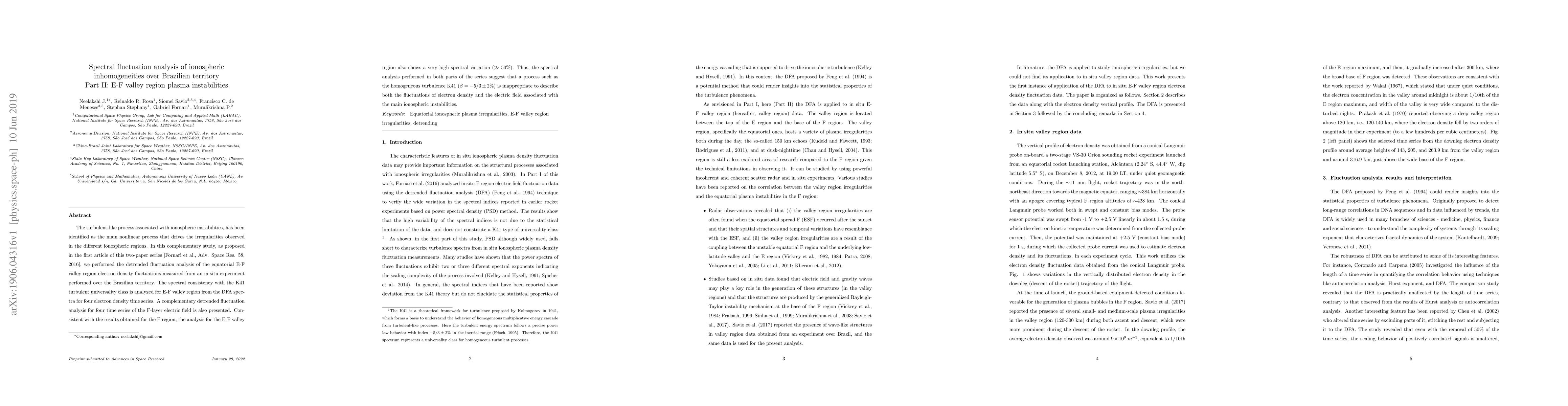 This study analyzes electron density fluctuations in Brazil's E-F valley region using detrended fluctuation analysis, finding significant spectral variation and inconsistency with K41 turbulence, suggesting alternative processes for ionospheric instabilities. The analysis also reveals high spectral variation in F-layer electric fields, indicating that homogeneous turbulence models are inadequate for describing these ionospheric phenomena.