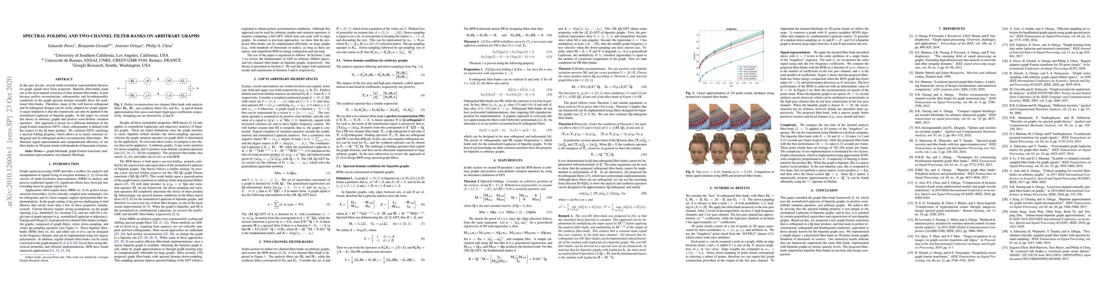 This paper extends the theory of bipartite filter-banks to arbitrary graphs by redefining the graph Fourier transform with respect to the Q inner product, thereby enabling spectral folding and the construction of orthogonal and bi-orthogonal filter-banks. The proposed method demonstrates signal representation and computational efficiency on 3D point clouds.