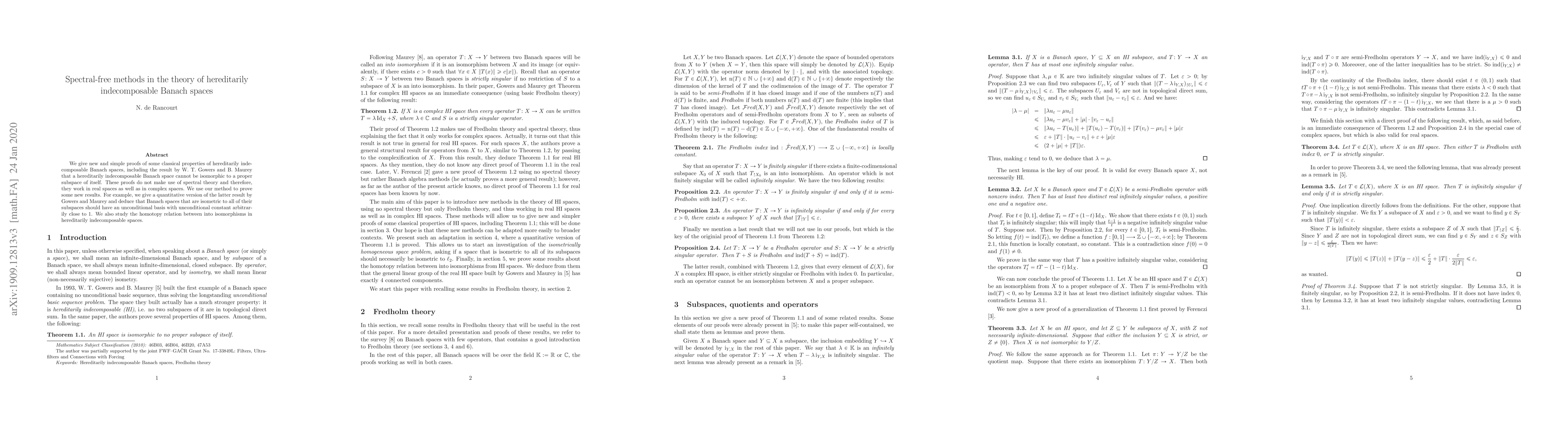 This paper presents novel, spectral-theory-free proofs for key properties of hereditarily indecomposable Banach spaces, including a new quantitative result on spaces isomorphic to their subspaces and explores homotopy relations between isomorphisms in such spaces.