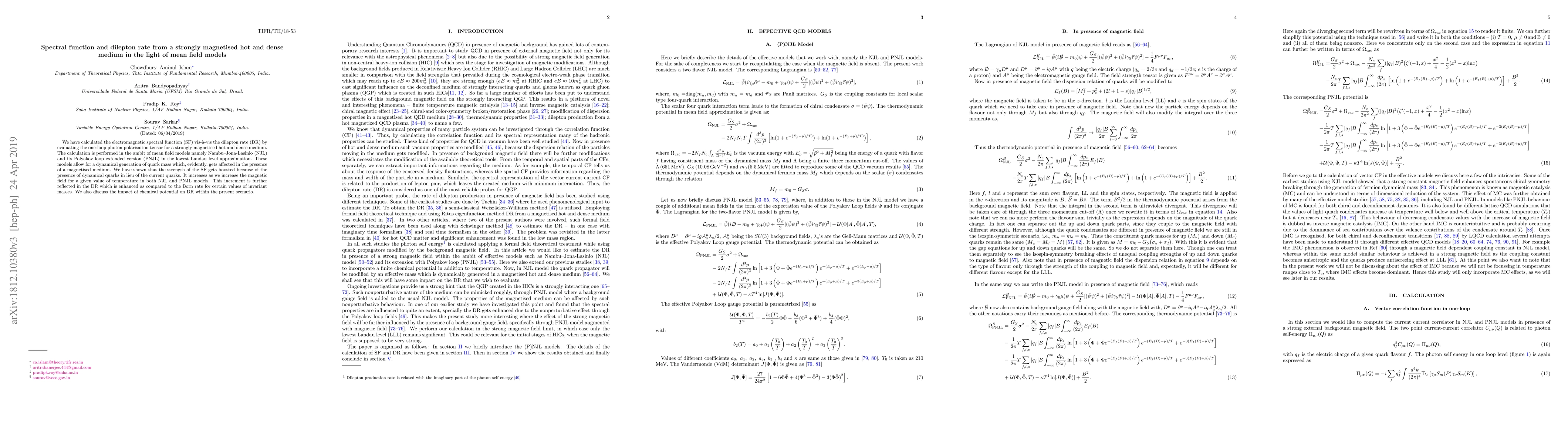 This paper calculates the electromagnetic spectral function and dilepton rate in a strongly magnetised hot and dense medium using mean field models NJL and PNJL. The results show that the spectral function strength increases with the magnetic field, leading to an enhanced dilepton rate compared to the Born rate, especially for certain invariant masses.