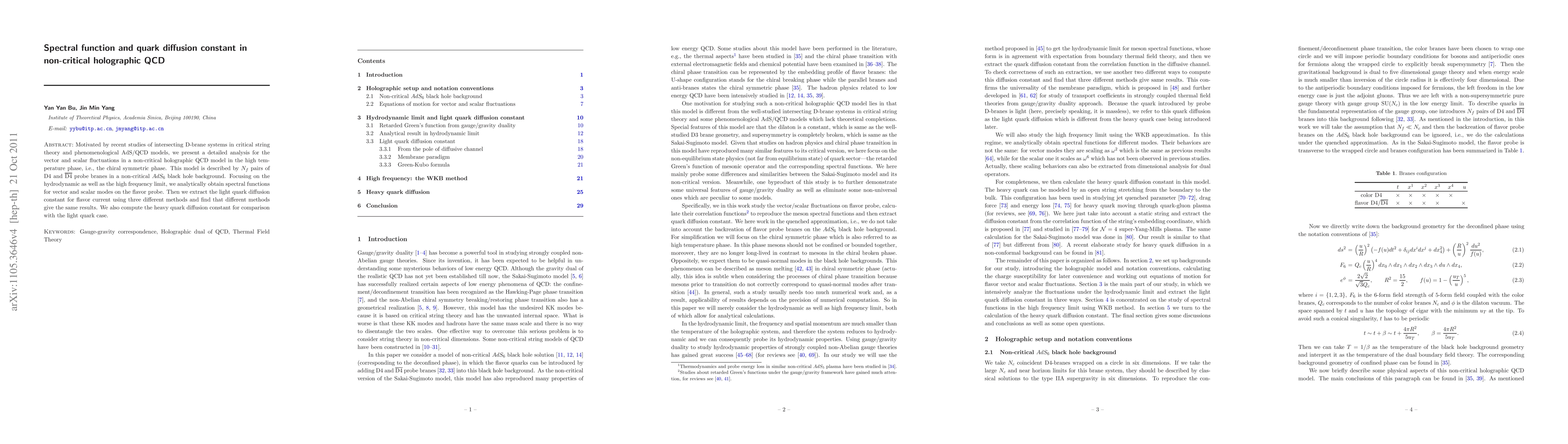 Motivated by recent studies of intersecting D-brane systems in critical string theory and phenomenological AdS/QCD models, we present a detailed analysis for the vector and scalar fluctuations in a non-critical holographic QCD model in the high temperature phase, i.e., the chiral symmetric phase. This model is described by $N_f$ pairs of D4 and $\bar{\text{D4}}$ probe branes in a non-critical ${AdS_6}$ black hole background. Focusing on the hydrodynamic as well as the high frequency limit, we analytically obtain spectral functions for vector and scalar modes on the flavor probe. Then we extract the light quark diffusion constant for flavor current using three different methods and find that different methods give the same results. We also compute the heavy quark diffusion constant for comparison with the light quark case.