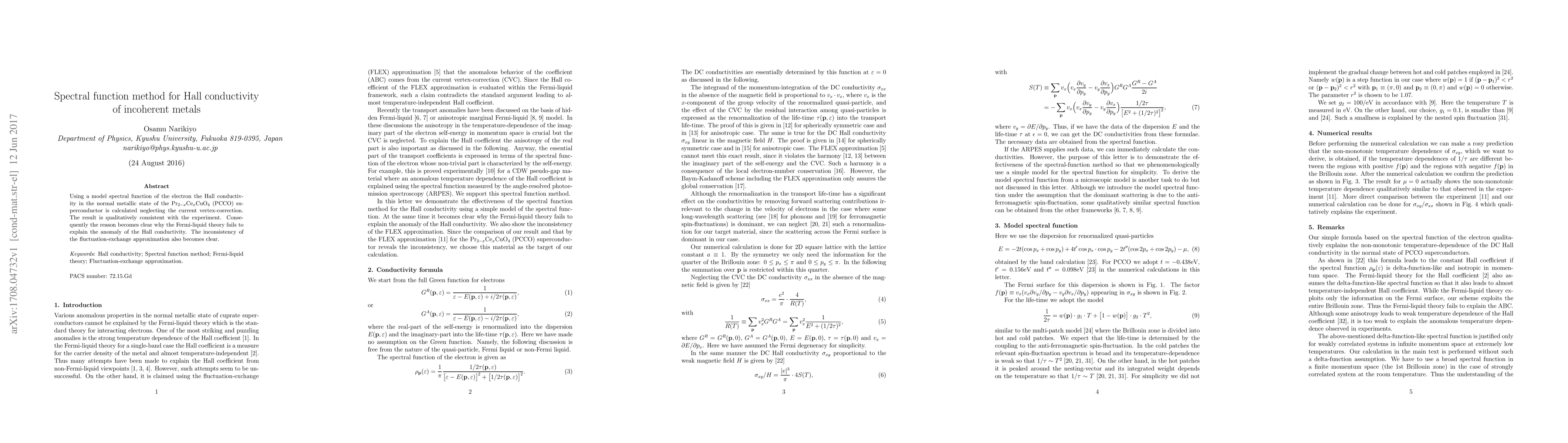 Researchers used a spectral function method to calculate Hall conductivity in Pr_{2-x}Ce_xCuO_4 (PCCO) superconductor, finding consistent results with experiments that contradict Fermi-liquid theory and fluctuation-exchange approximation.