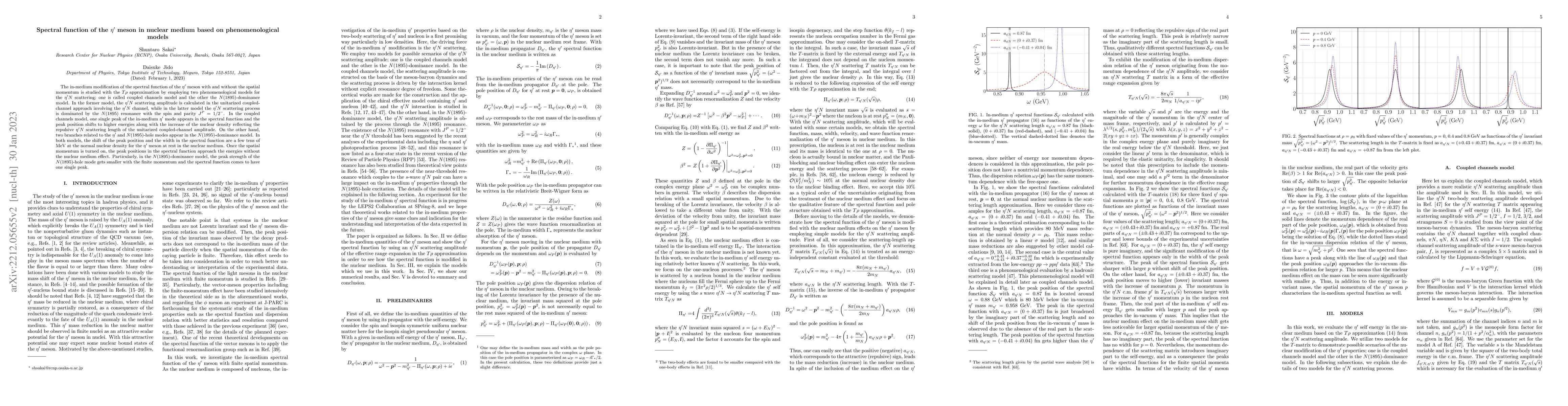 This paper investigates the in-medium spectral function of the $\eta'$ meson using two phenomenological models: one based on a coupled-channel approach and the other on the $N(1895)$ resonance dominance. Both models show shifts in peak positions and widths in the spectral function, with notable differences in the number of spectral branches observed.