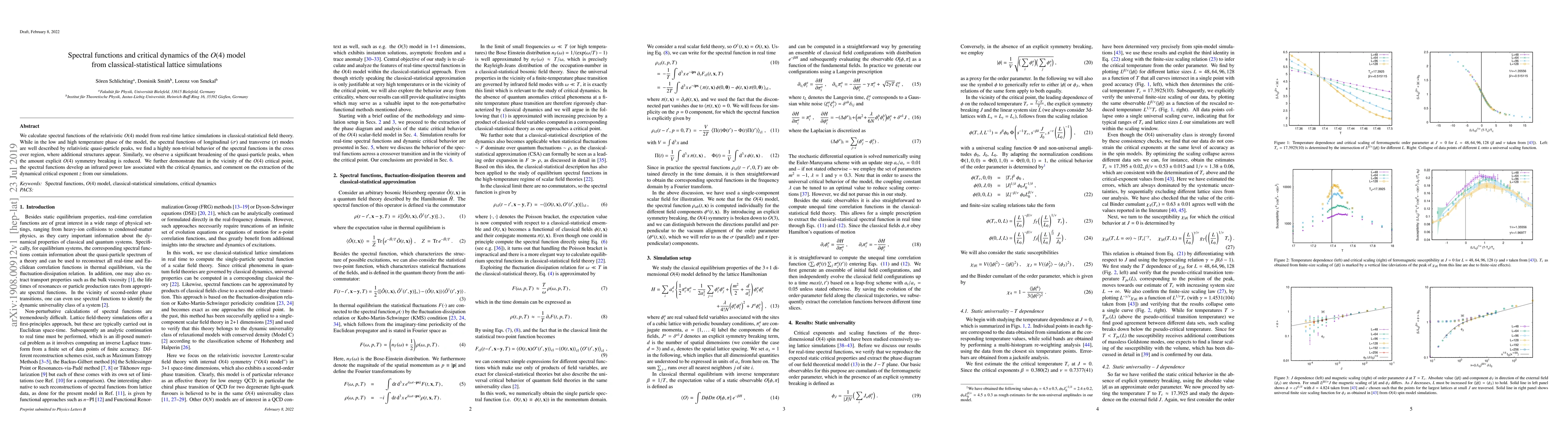 Researchers studied the $O(4)$ model using classical-statistical lattice simulations and found non-trivial behavior in its spectral functions, especially near the critical point, indicating complex dynamics.