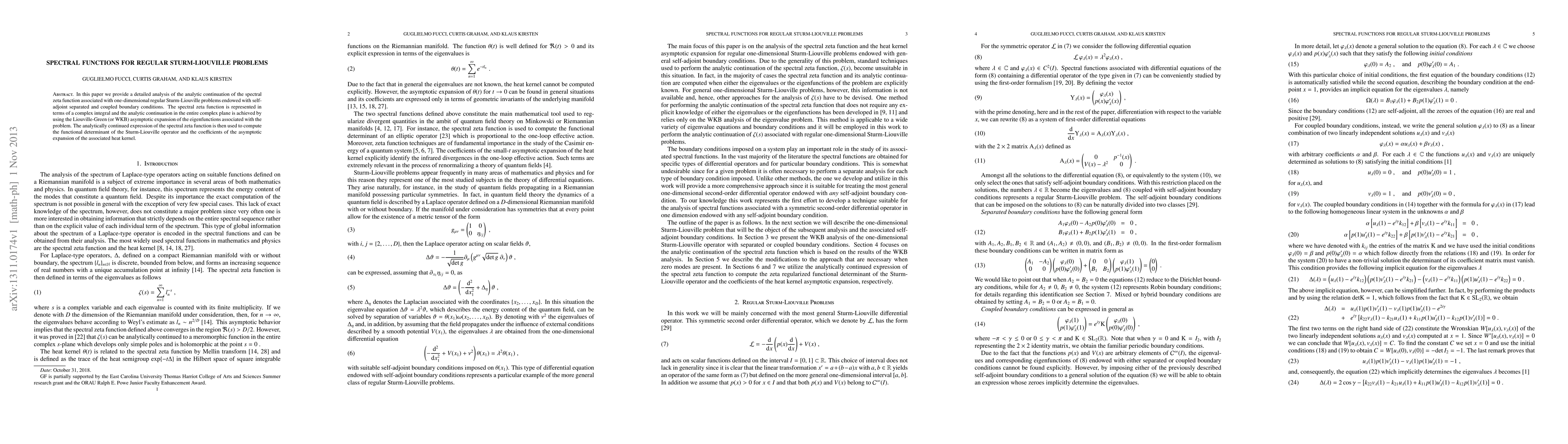 Fritz Gesztesy, Klaus Kirsten, Guglielmo Fucci et al.