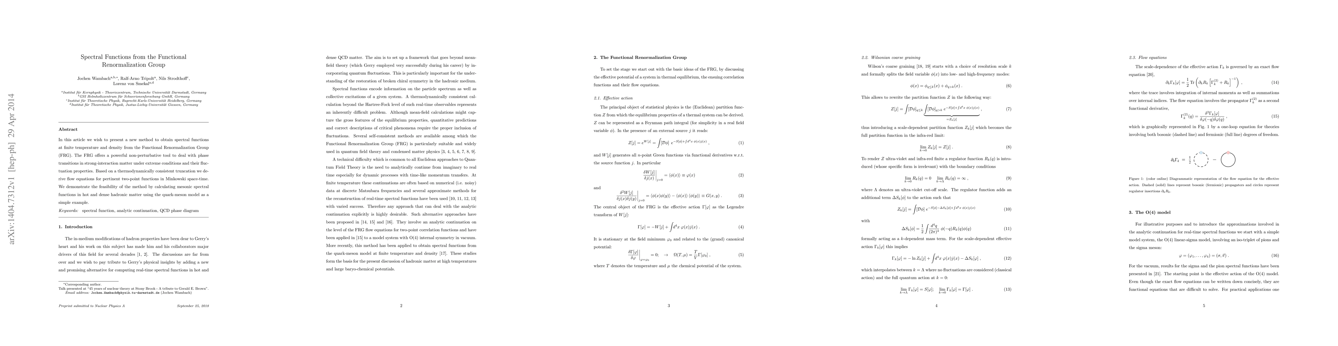 This paper introduces a novel method using the Functional Renormalization Group (FRG) to derive spectral functions at finite temperature and density, demonstrating its application through calculations of mesonic spectral functions in hot and dense hadronic matter via the quark-meson model. The FRG provides a non-perturbative approach to study phase transitions in strong-interaction matter.