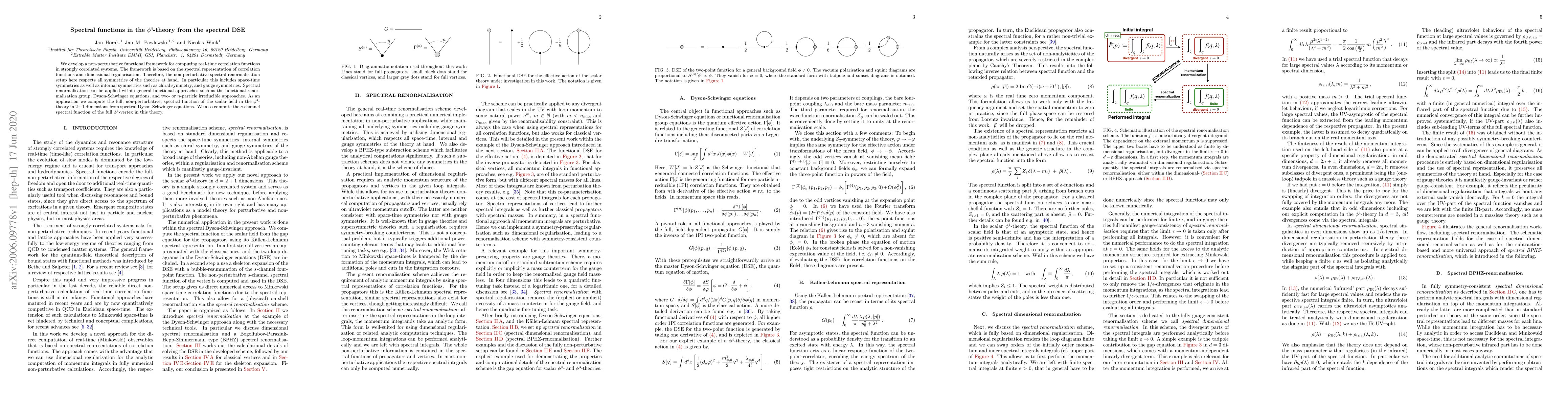 We develop a non-perturbative functional framework for computing real-time correlation functions in strongly correlated systems. The framework is based on the spectral representation of correlation functions and dimensional regularisation. Therefore, the non-perturbative spectral renormalisation setup here respects all symmetries of the theories at hand. In particular this includes space-time symmetries as well as internal symmetries such as chiral symmetry, and gauge symmetries. Spectral renormalisation can be applied within general functional approaches such as the functional renormalisation group, Dyson-Schwinger equations, and two- or $n$-particle irreducible approaches. As an application we compute the full, non-perturbative, spectral function of the scalar field in the $\phi^4$-theory in $2+1$ dimensions from spectral Dyson-Schwinger equations. We also compute the $s$-channel spectral function of the full $\phi^4$-vertex in this theory.