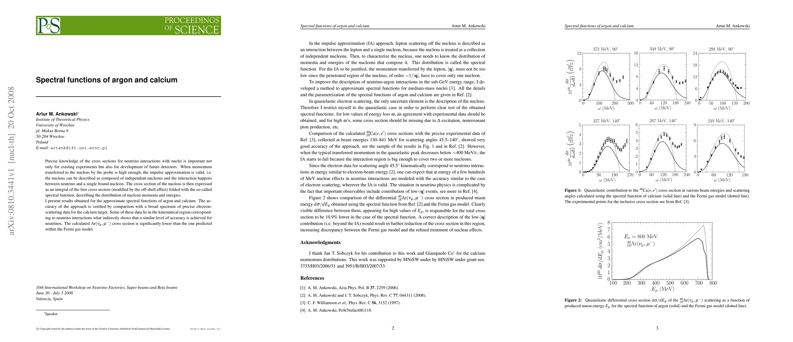 Precise knowledge of the cross sections for neutrino interactions with nuclei is important not only for existing experiments but also for development of future detectors. When momentum transferred to the nucleus by the probe is high enough, the impulse approximation is valid, i.e. the nucleus can be described as composed of independent nucleons and the interaction happens between neutrino and a single bound nucleon. The cross section of the nucleus is then expressed as an integral of the free cross section (modified by the off-shell effect) folded with the so-called spectral function, describing the distribution of nucleon momenta and energies. I present results obtained for the approximate spectral functions of argon and calcium. The accuracy of the approach is verified by comparison with a broad spectrum of precise electron-scattering data for the calcium target. Some of these data lie in the kinematical region corresponding to neutrino interactions what indirectly shows that a similar level of accuracy is achieved for neutrinos. The calculated Ar(nu_mu,mu) cross section is significantly lower than the one predicted within the Fermi gas model.