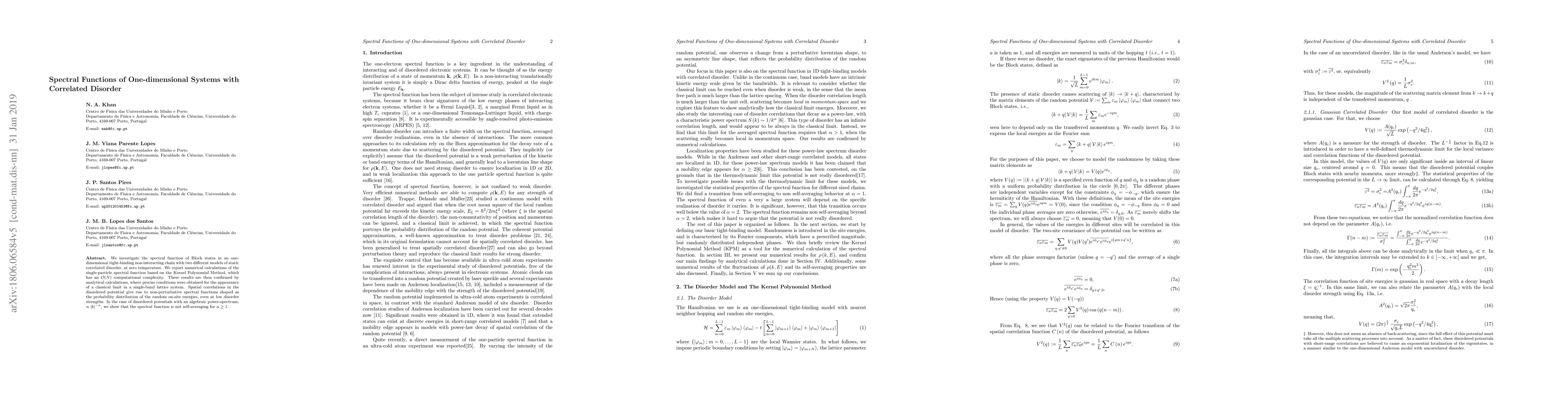 This paper examines the spectral function of one-dimensional non-interacting chains under correlated disorder, employing the Kernel Polynomial Method for numerical calculations and analytical methods for theoretical insights. It finds that spatial correlations in the disorder lead to non-perturbative spectral functions, and for certain power-law disorder spectra, the spectral function fails to self-average.