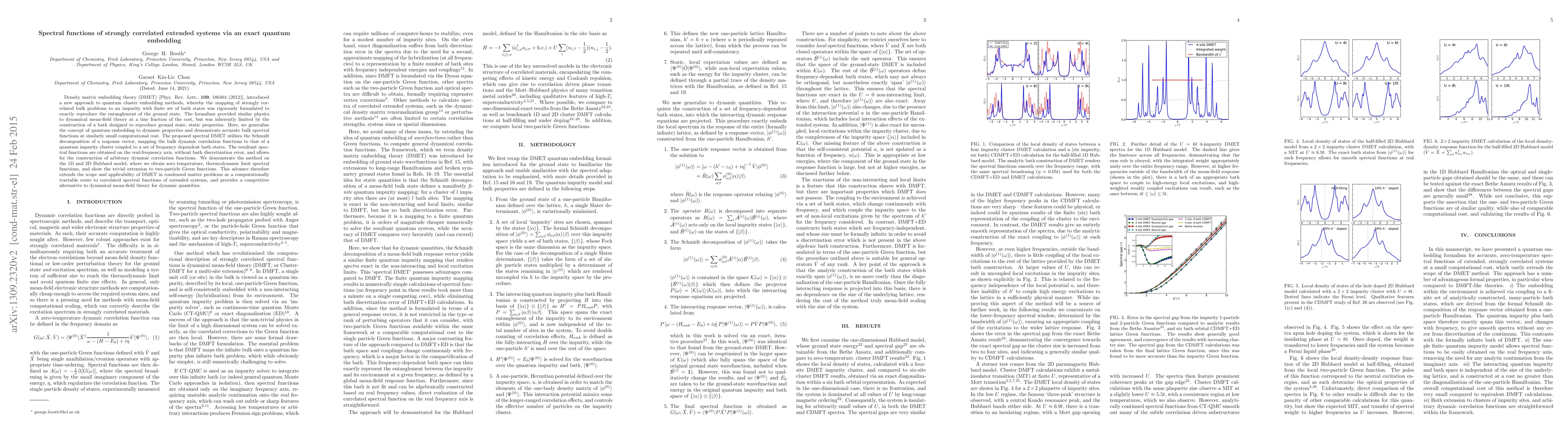 Density matrix embedding theory (DMET) [Phys. Rev. Lett., 109, 186404 (2012)], introduced a new approach to quantum cluster embedding methods, whereby the mapping of strongly correlated bulk problems to an impurity with finite set of bath states was rigorously formulated to exactly reproduce the entanglement of the ground state. The formalism provided similar physics to dynamical mean-field theory at a tiny fraction of the cost, but was inherently limited by the construction of a bath designed to reproduce ground state, static properties. Here, we generalize the concept of quantum embedding to dynamic properties and demonstrate accurate bulk spectral functions at similarly small computational cost. The proposed spectral DMET utilizes the Schmidt decomposition of a response vector, mapping the bulk dynamic correlation functions to that of a quantum impurity cluster coupled to a set of frequency dependent bath states. The resultant spectral functions are obtained on the real-frequency axis, without bath discretization error, and allows for the construction of arbitrary dynamic correlation functions. We demonstrate the method on the 1D and 2D Hubbard model, where we obtain zero temperature, thermodynamic limit spectral functions, and show the trivial extension to two-particle Green functions. This advance therefore extends the scope and applicability of DMET in condensed matter problems as a computationally tractable route to correlated spectral functions of extended systems, and provides a competitive alternative to dynamical mean-field theory for dynamic quantities.