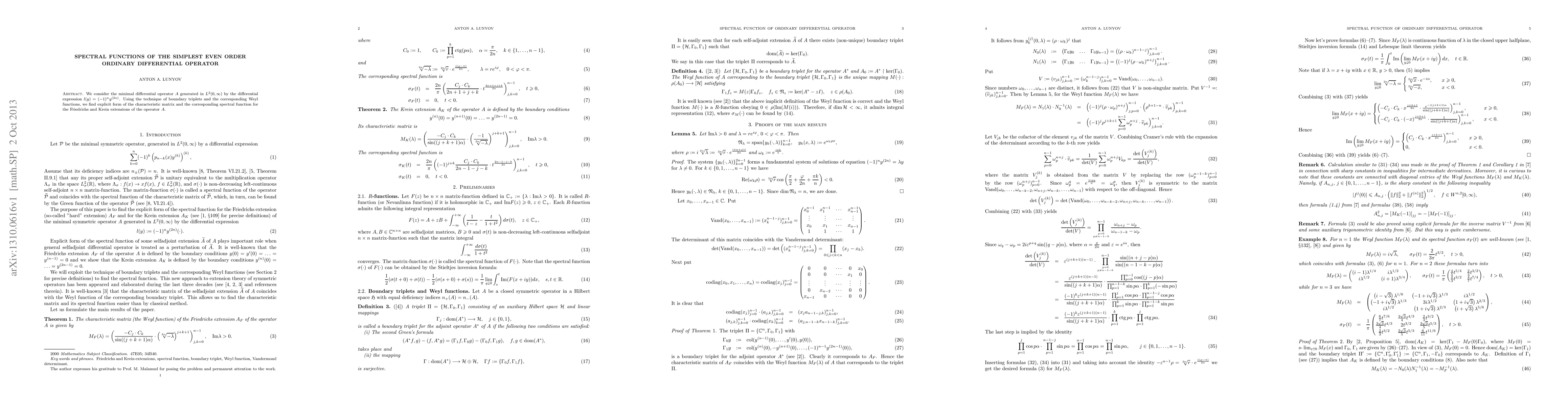 We consider the minimal differential operator A generated in $L^2(0,\infty)$ by the differential expression $l(y) = (-1)^n y^{(2n)}$. Using the technique of boundary triplets and the corresponding Weyl functions, we find explicit form of the characteristic matrix and the corresponding spectral function for the Friedrichs and Krein extensions of the operator A.