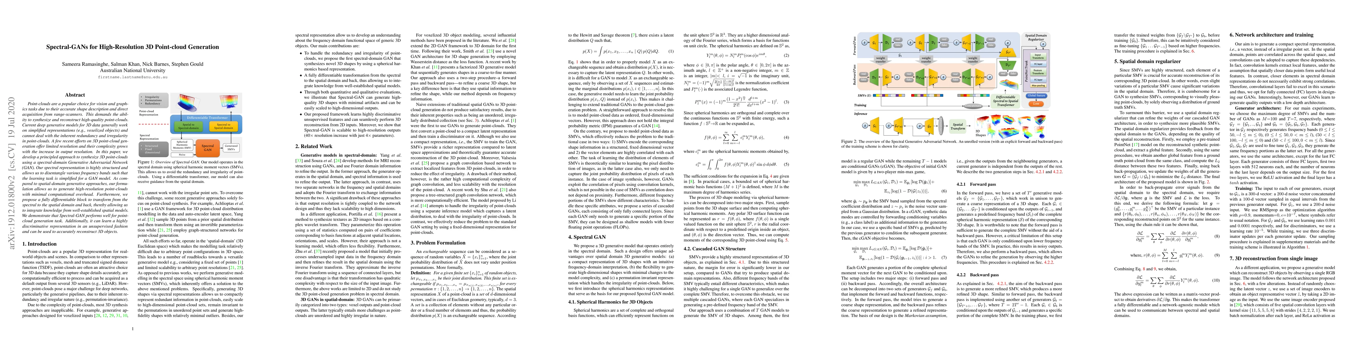 A new approach to generating high-resolution 3D point-clouds using a spectral-domain Generative Adversarial Network (GAN) is proposed, offering improved resolution and efficiency compared to existing methods.