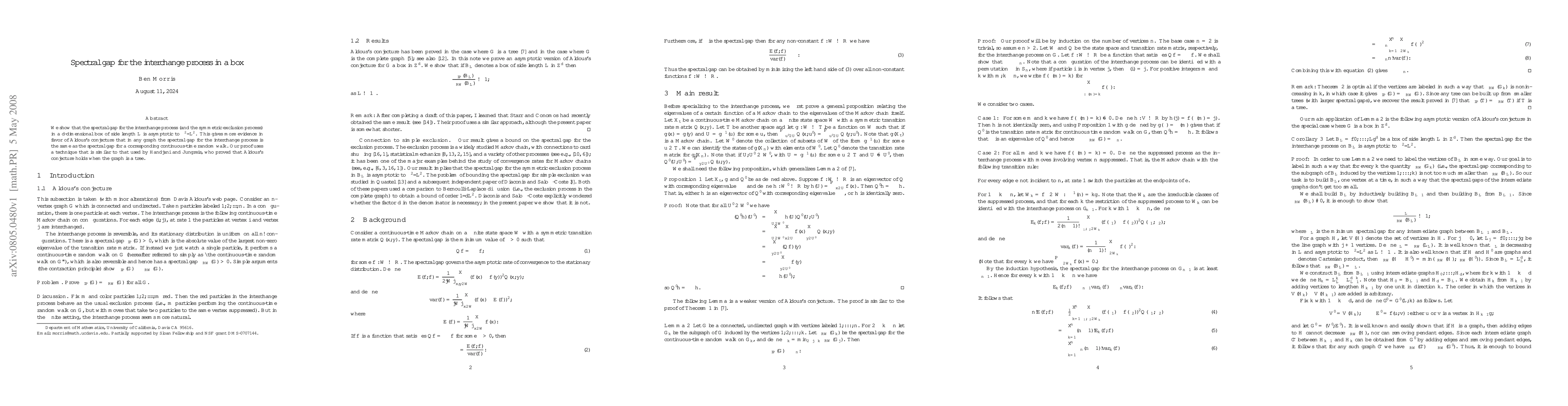 This research demonstrates that the spectral gap for the interchange process in a $d$-dimensional box of side length $L$ asymptotically approaches $\pi^2/L^2$, supporting Aldous's conjecture about the equivalence of spectral gaps for interchange processes and continuous-time random walks. The proof method mirrors that used to confirm Aldous's conjecture for tree structures.