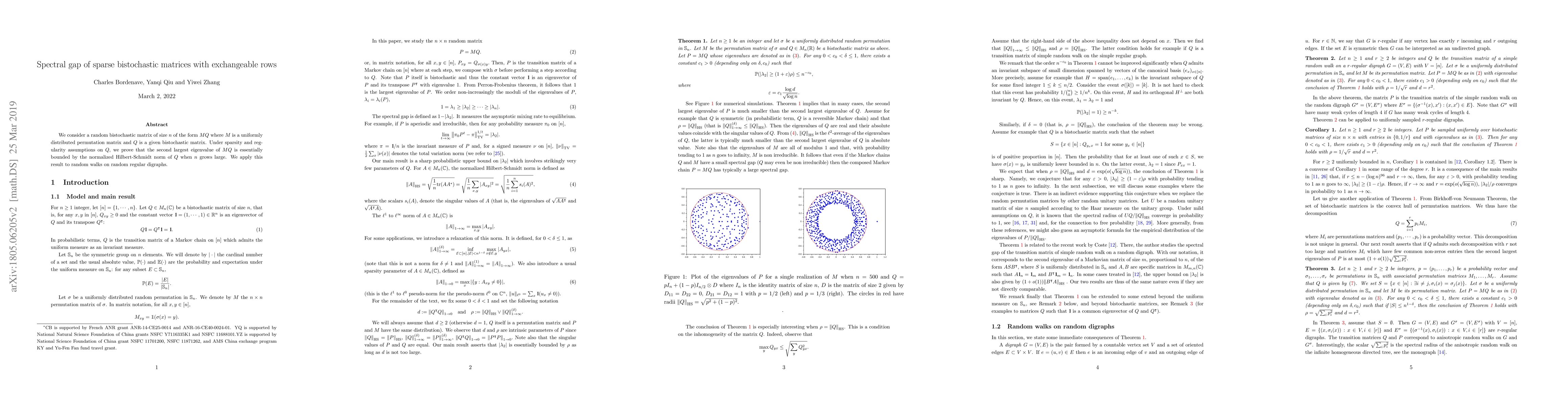 We consider a random bistochastic matrix of size $n$ of the form $M Q$ where $M$ is a uniformly distributed permutation matrix and $Q$ is a given bistochastic matrix. Under mild sparsity and regularity assumptions on $Q$, we prove that the second largest eigenvalue of $MQ$ is essentially bounded by the normalized Hilbert-Schmidt norm of $Q$ when $n$ grows large. We apply this result to random walks on random regular digraphs and to shuffle-and-fold maps of the unit interval popularized in fluid mixing protocols.