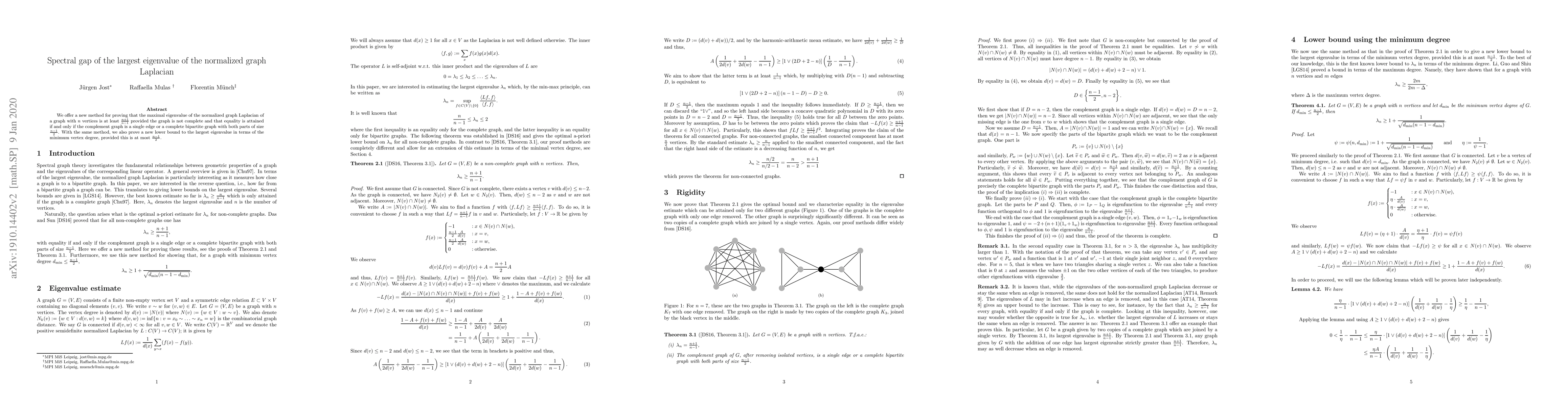We offer a new method for proving that the maximal eigenvalue of the normalized graph Laplacian of a graph with $n$ vertices is at least $\frac{n+1}{n-1}$ provided the graph is not complete and that equality is attained if and only if the complement graph is a single edge or a complete bipartite graph with both parts of size $\frac{n-1}2$. With the same method, we also prove a new lower bound to the largest eigenvalue in terms of the minimum vertex degree, provided this is at most $\frac{n-1}{2}$.