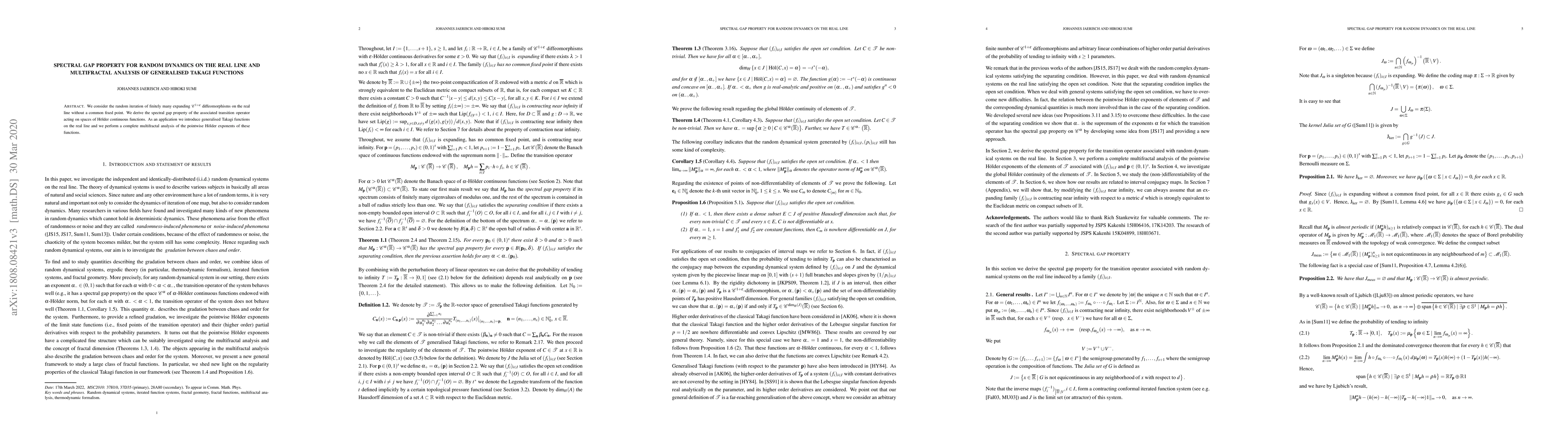 Summary: This paper investigates the spectral gap property of random dynamical systems on the real line and applies it to derive a multifractal analysis of generalised Takagi functions, examining their pointwise H\"older exponents.
