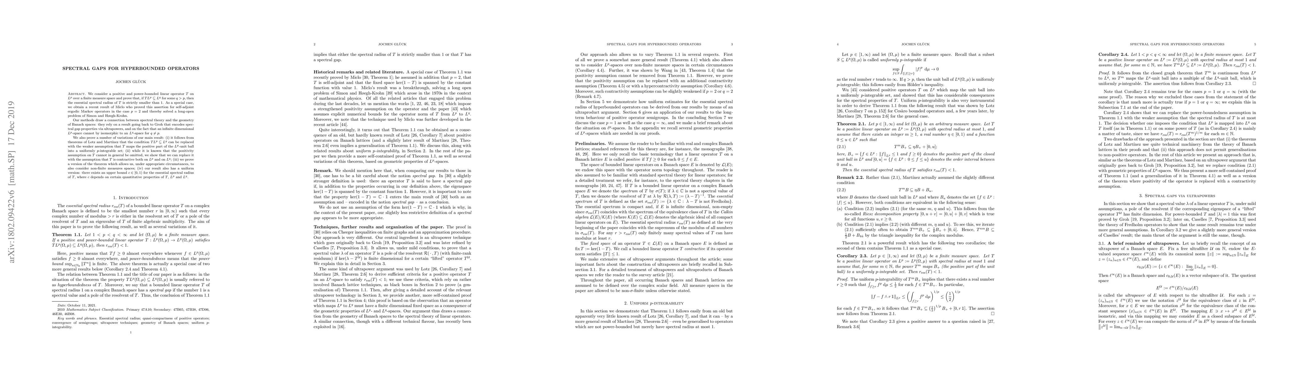 Researchers prove that if a positive operator $T$ maps $L^p$ to $L^q$, then its essential spectral radius is strictly smaller than 1 for $q > p$. This resolves a long-open problem in spectral theory.